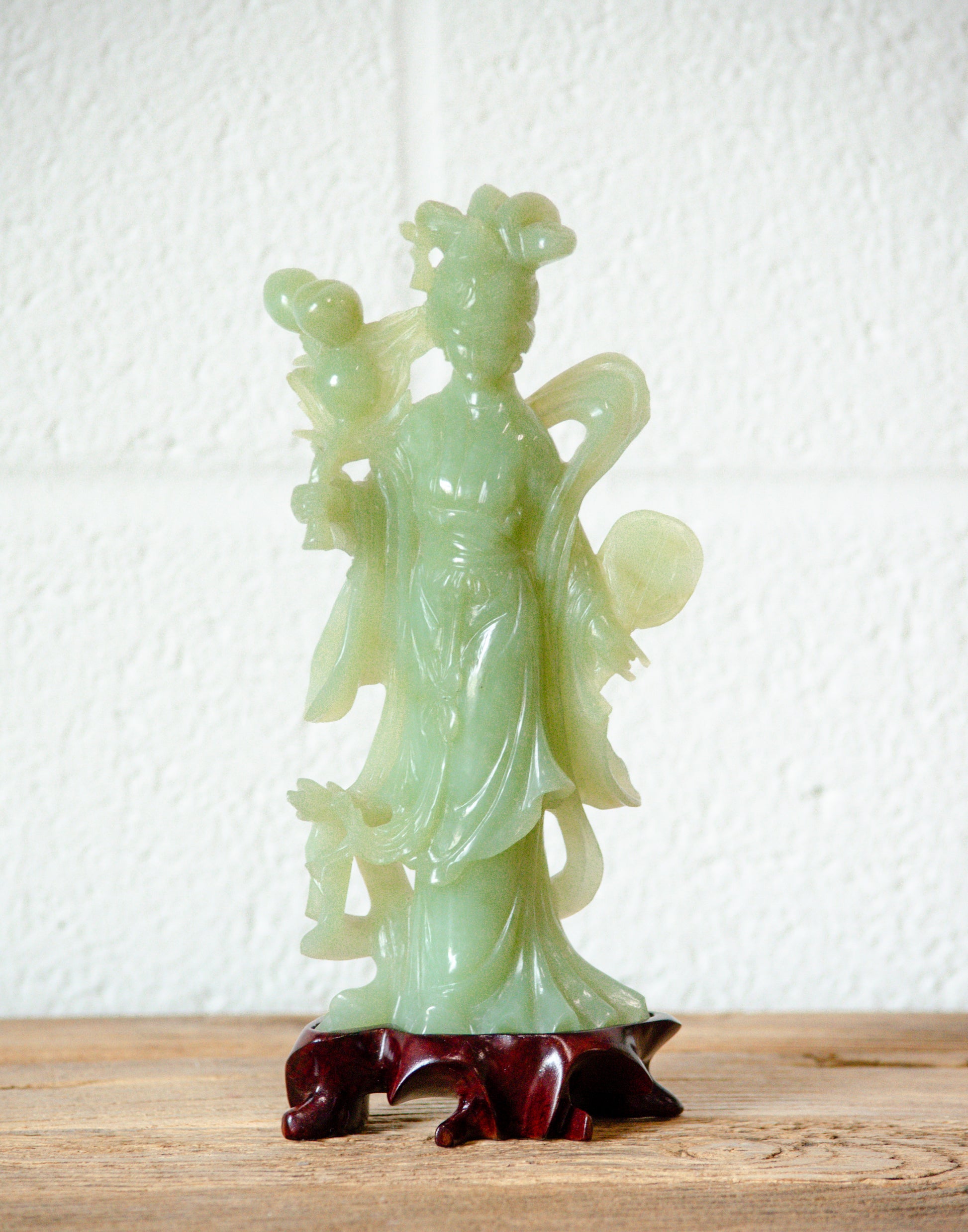 1920's-era carved jade statue of a woman. Comes with wooden base!