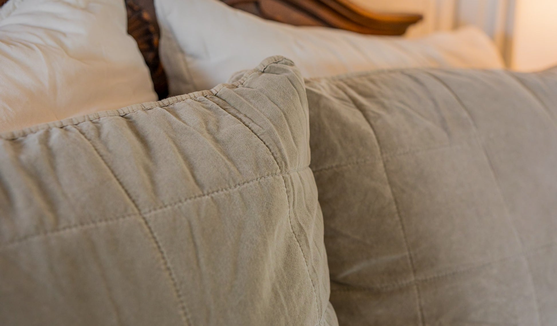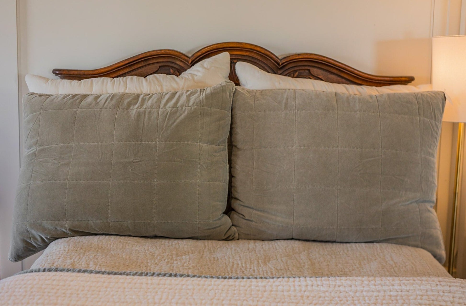 Get ready to cozy up with the Amsterdam Coverlet! Made of cotton velvet with a solid backing and a soft feel, this collection is perfect for adding a touch of modern style to your bedroom. Its quilted square pattern adds a simple and sleek touch, while the ruched flange edge and poly fill batting provide extra comfort!