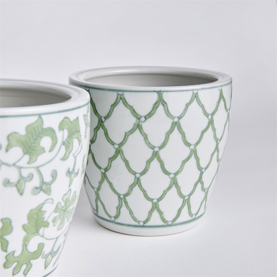 Choose a timeless chinoiserie pattern in refreshing blue or green! These patterns bring balance and harmony to any zen home. A welcomed addition to any well-appointed kitchen, study, or covered porch, bringing a sense of stability and calm. And each pot has a drain hole!