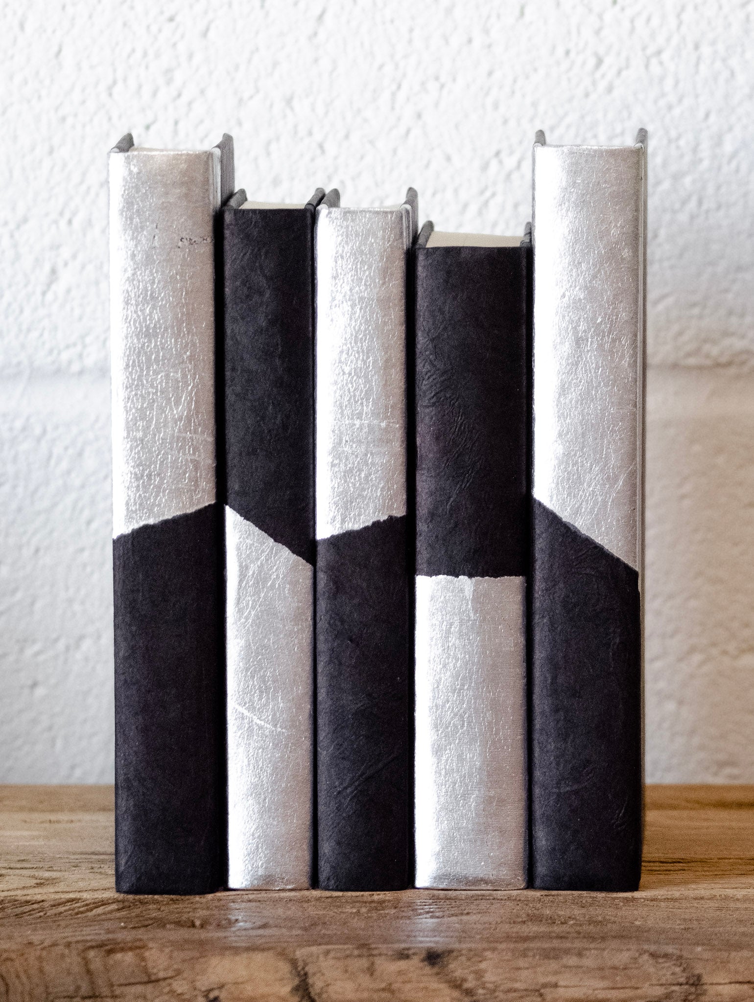Get ready to add a touch of modern and striking décor to your bookshelf with our Black Parchment Dipped in Metal Decorative Book. Each book is sold separately and comes in your choice of gold or silver. The black cover and unique design make this a must-have for any stylish home!