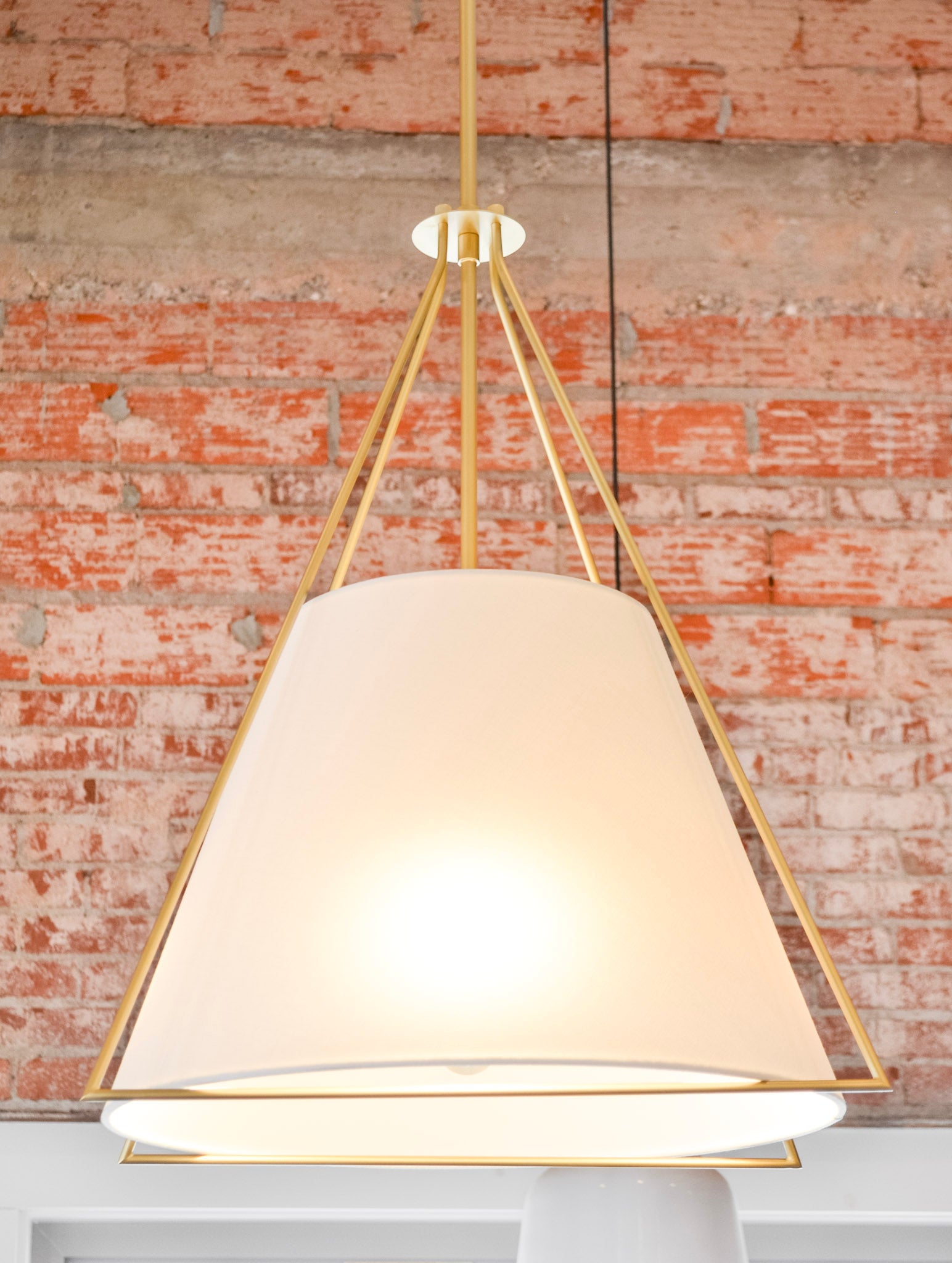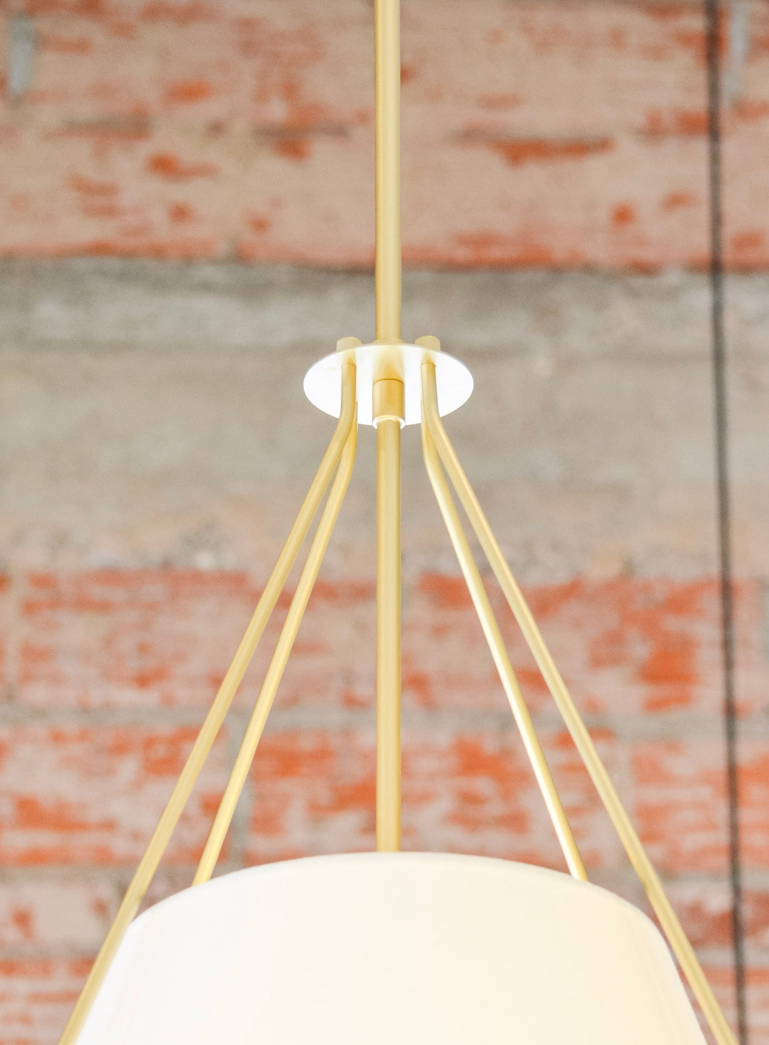The Blaire Pendant dances between today's minimalism and yesterday's grace with a playful twist! Its gold frame pops against a crisp white shade. The open geometric design doesn't just look pretty—it brings a breezy, architectural vibe that'll make your dining space, kitchen, or entryway instantly more interesting. With its fuss-free silhouette and goes-with-everything color scheme, this light fixture plays nice with all sorts of styles, whether you're team modern or somewhere in between!