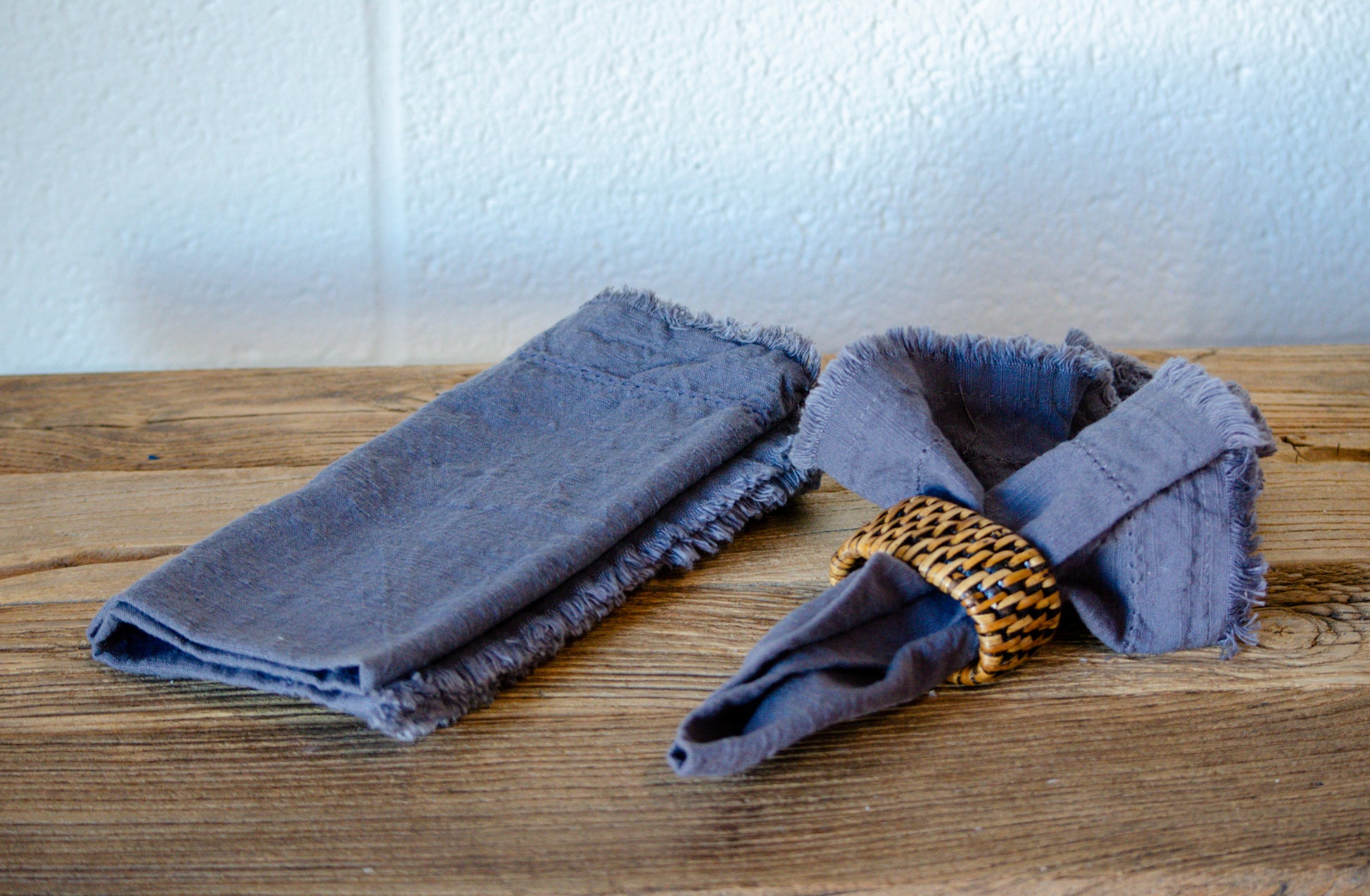 Brighten up your dinner table with this set of two delightful blue napkins, featuring a frayed edge and delicate stitching! Give your meals a splash of elegance without the usual frills or fuss. Perfect for adding a fun twist to any meal!