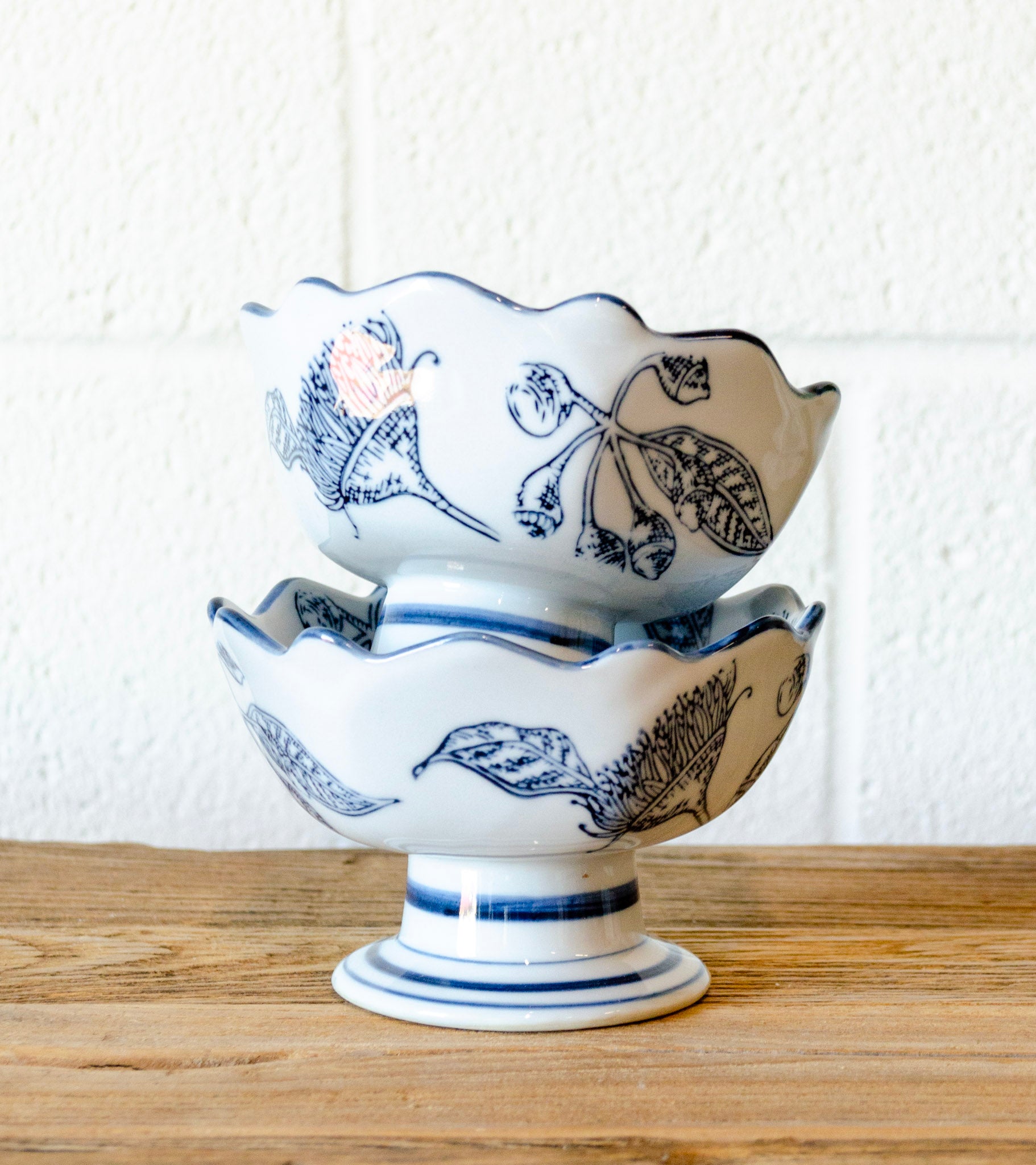 This Blue Stoneware Footed Bowl is a perfect balance of nature and craftsmanship. The round, elevated design showcases a stunning blue botanical print against a pure white background. With its tranquil and invigorating visual harmony, it's like a slice of a peaceful garden in your home. Use it for fruits or simply appreciate its detailed beauty, it's nature's own design brought to life in a versatile and beautiful way!