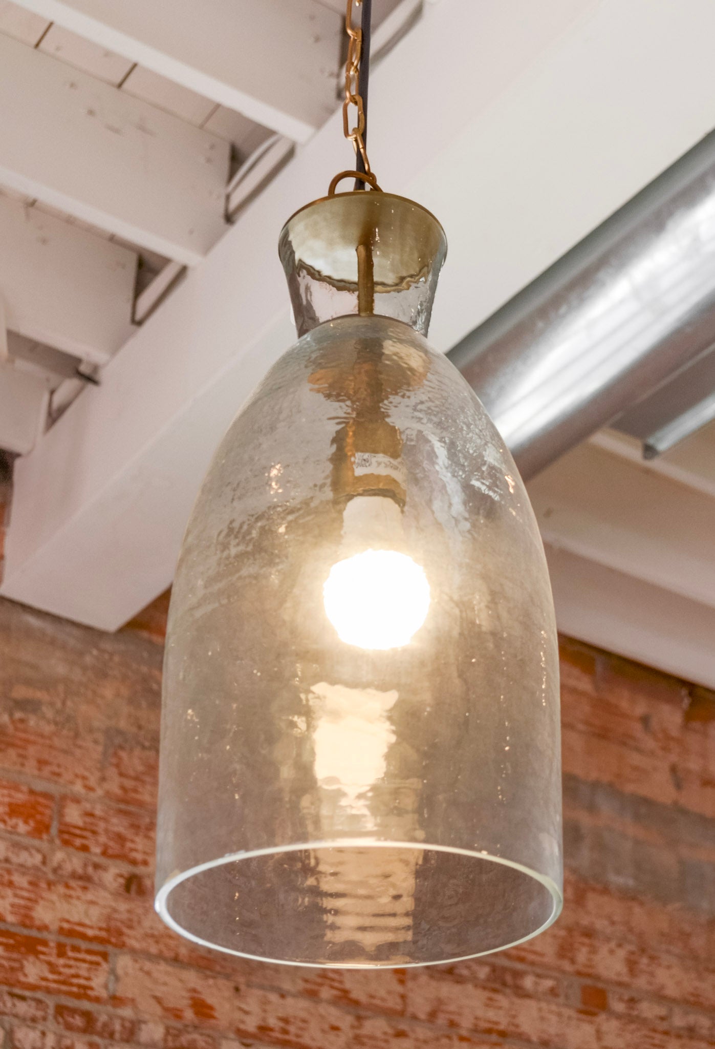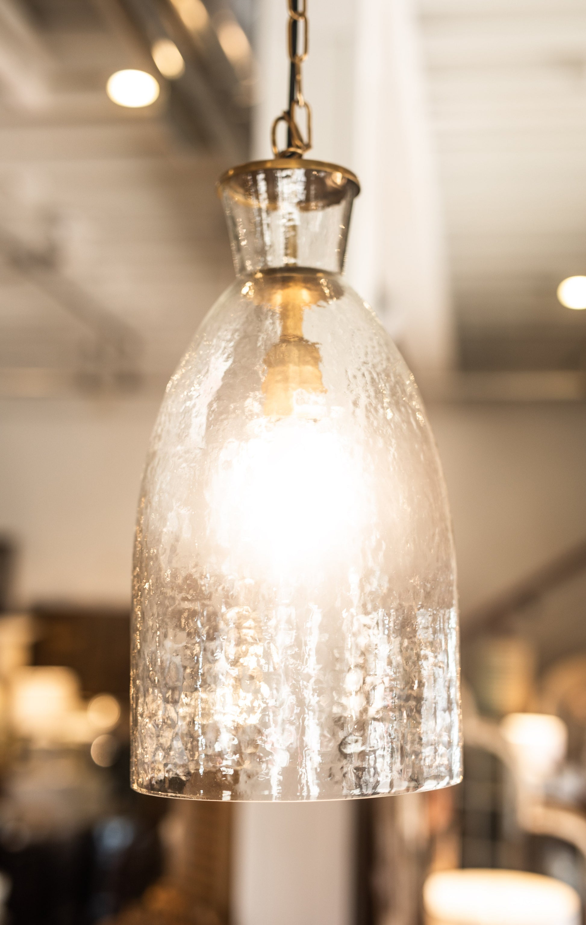 In a classic mix of warm brass and seeded glass, the Caroline pendant is a traditional fixture. Over an island, in an entry or foyer, this pendant makes for a show-stopping piece!