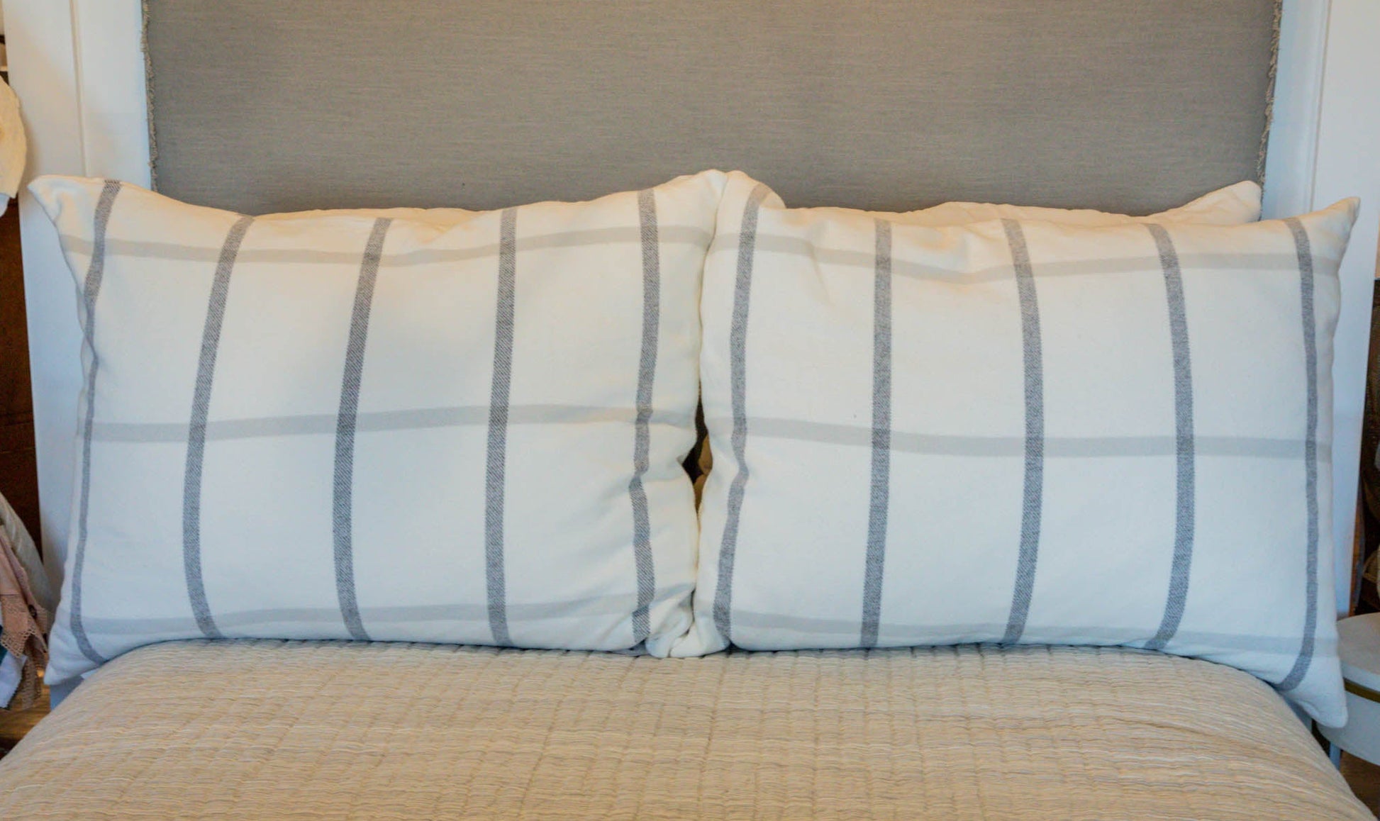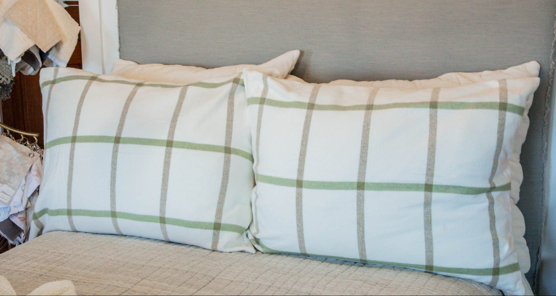 Classic, minimal plaid in two hues on super soft combed cotton, finished with a 1/4" flange, the Copenhagen collection is both cozy and lightweight!