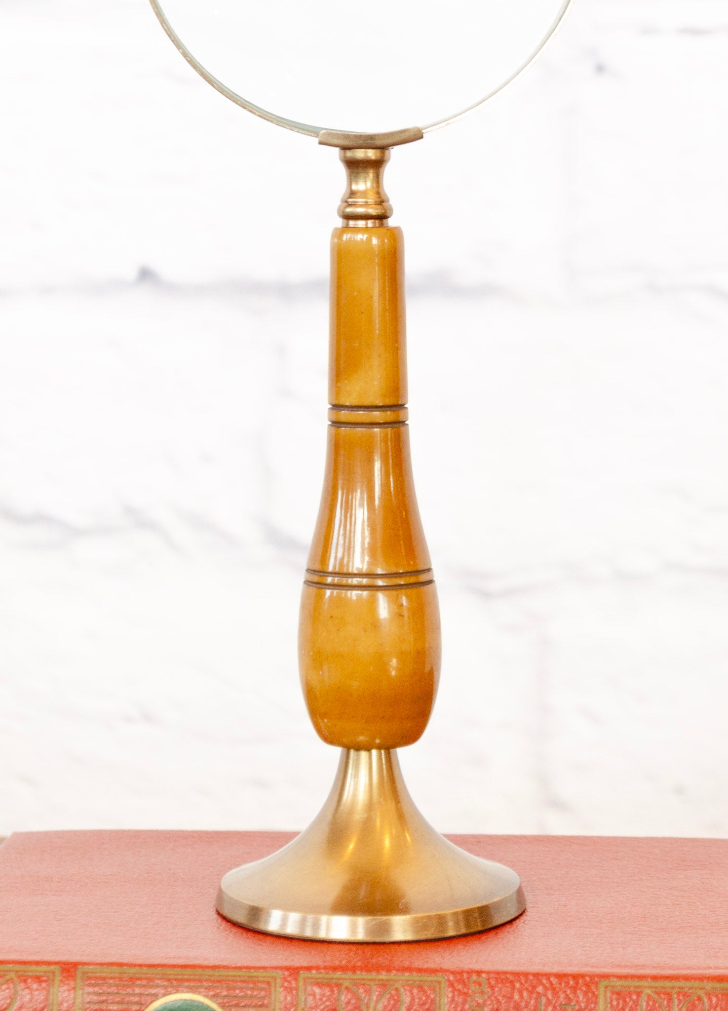 Experience the charm of this antique-looking magnifying glass featuring a bone handle and brass details. Perfect for any room, from boho to quirky, this decorative piece comes with a stand for easy display. Put a unique spin on your décor with this magnifying glass!