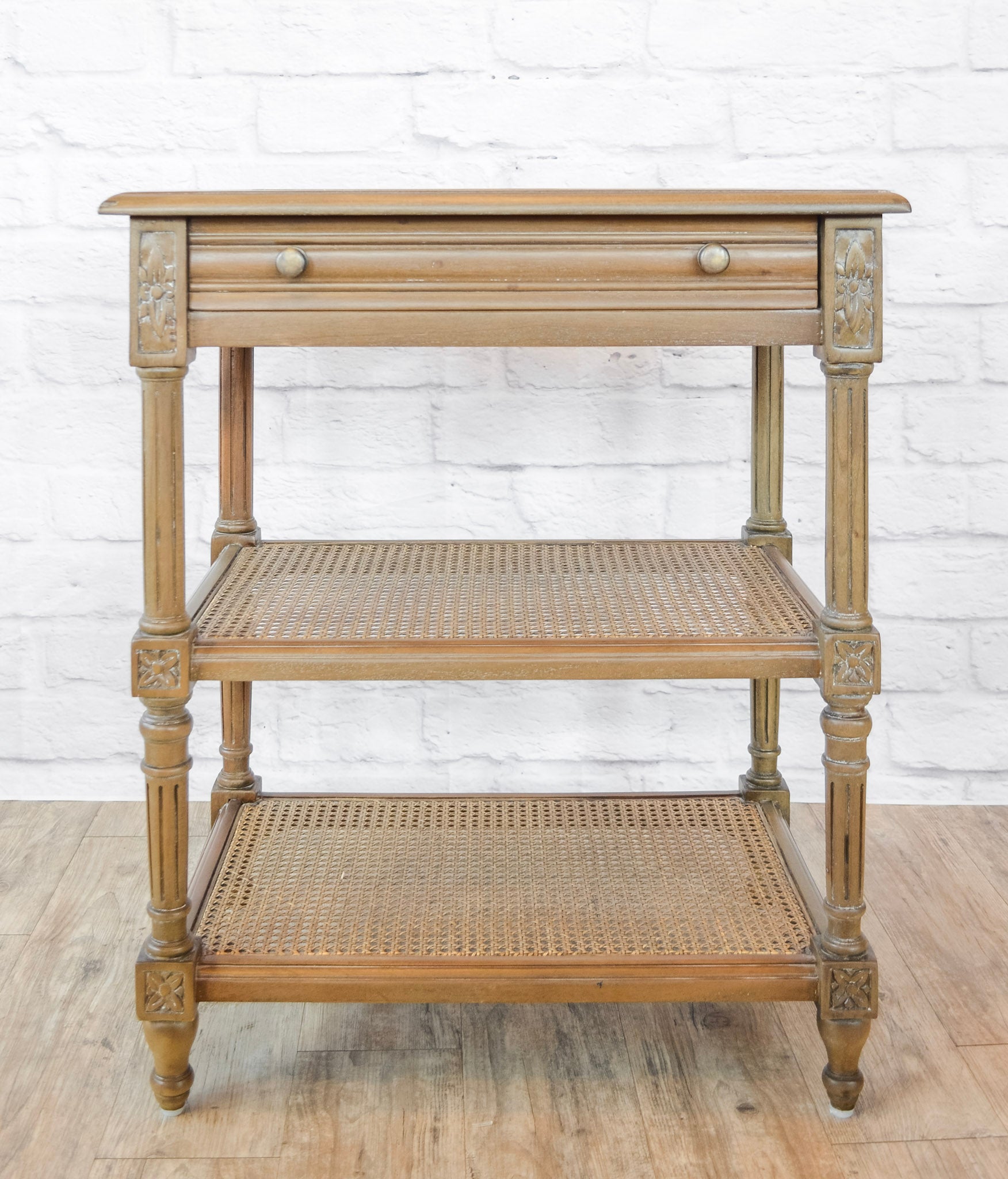 Bring a touch of class to your space with our Dara Side Table! This charming mahogany piece is finished in a beautiful medium tone. Carved floral details add extra appeal, while the two shelves and single drawer add storage. It's the perfect addition to your living room or bedroom!