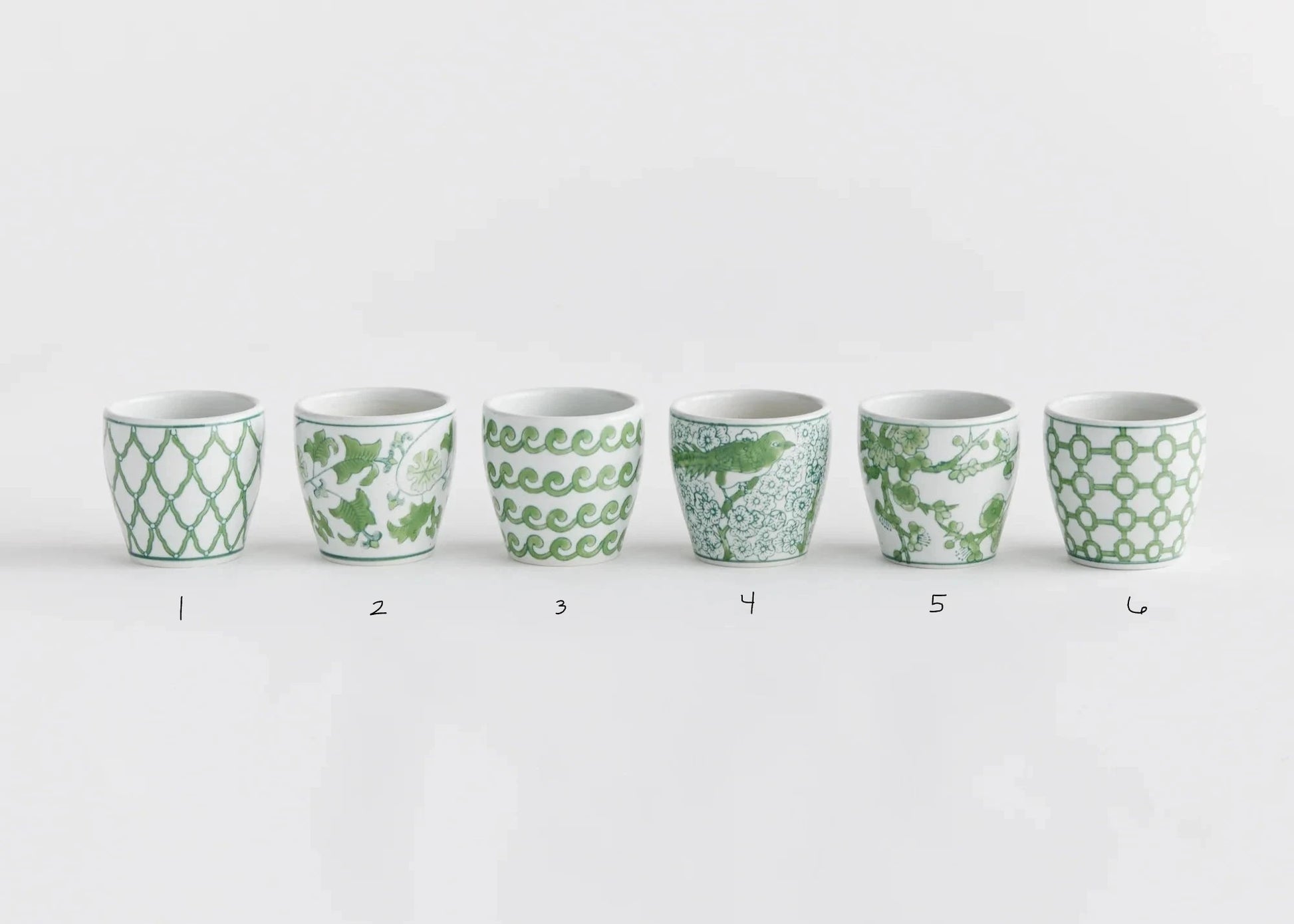 Embrace a timeless chinoiserie with shades of green and white - a refreshing choice for any space. The color green is known for its harmonizing and balancing qualities, making it the perfect design inspiration for these charming mini pots. Welcome to your kitchen, study, or covered porch - these pots bring stability and calm. Take your pick from 5 one-of-a-kind, stunning patterns!