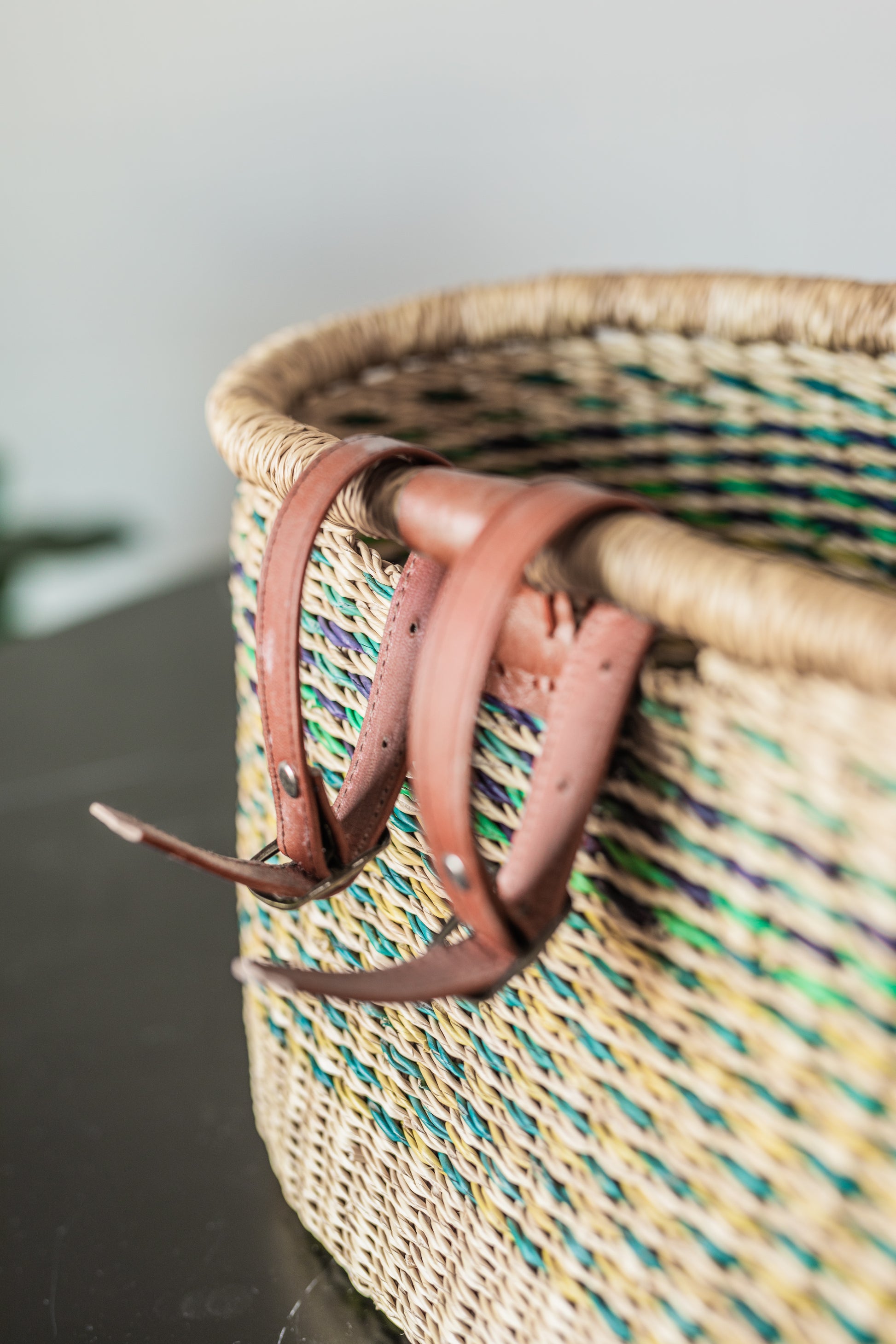 Adorable handwoven fair trade baskets with 2 leather straps to attach to your bike! Handy for going to the grocery store, school, as a cute accessory, or storage in your home!