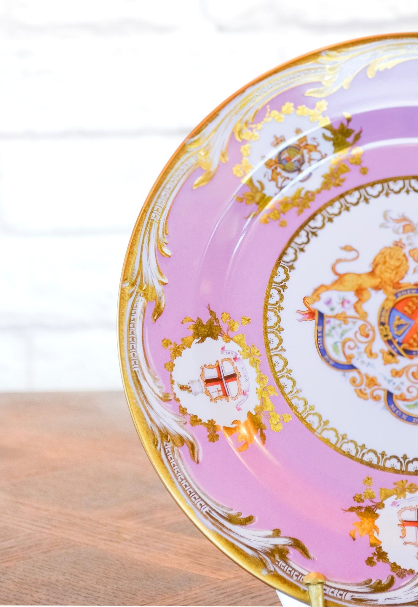Elevate your table setting with the Great Exhibition Tin Charger, featuring a classic, regal design that exudes timeless elegance. Its purple background, adorned with gold foil and a royal crest, creates an iconic centerpiece perfect for sophisticated occasions. Make every meal memorable by adding this refined touch to your dining experience!