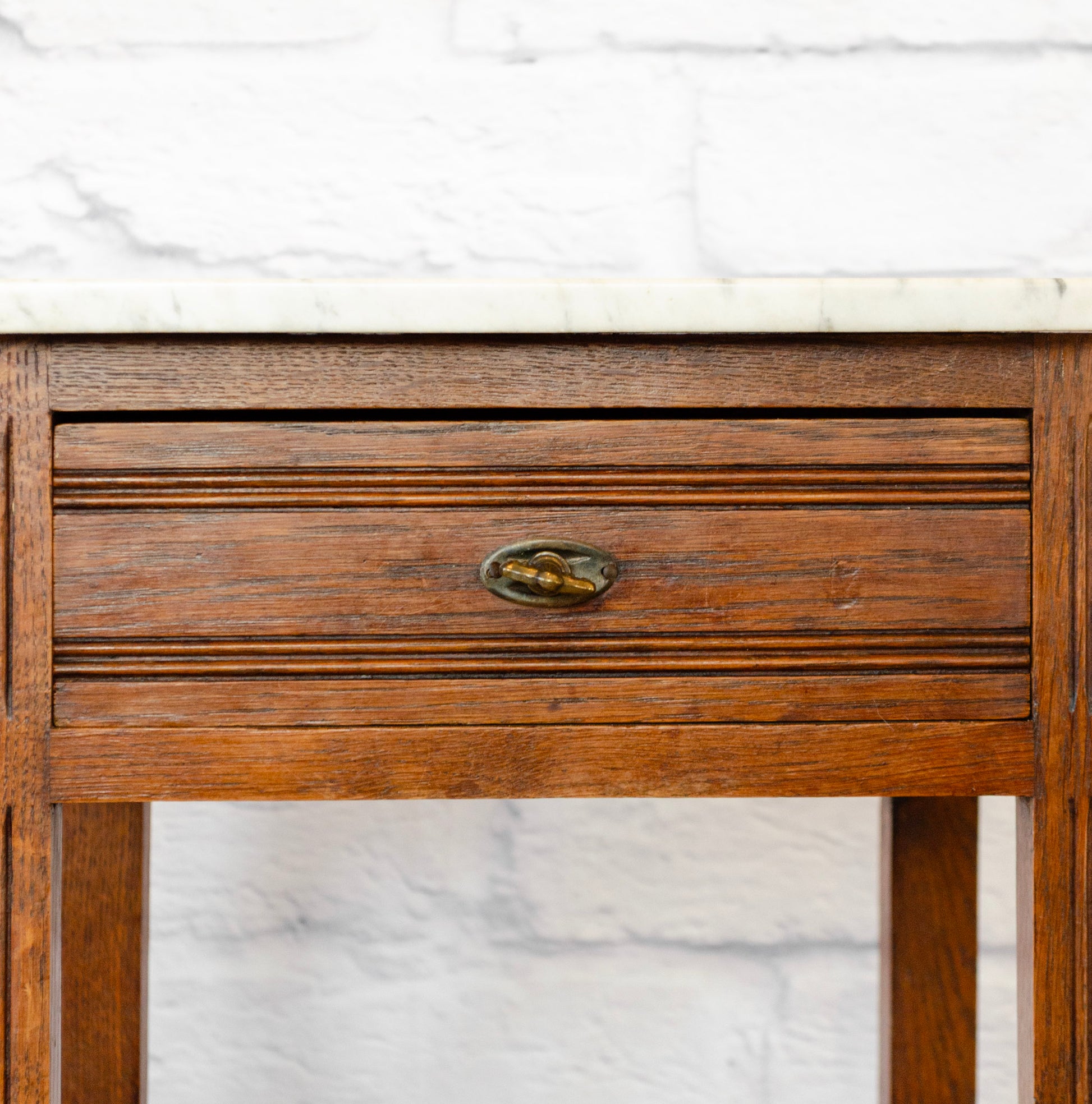 Henri IV Style White Marble Top Oak Side Cabinet