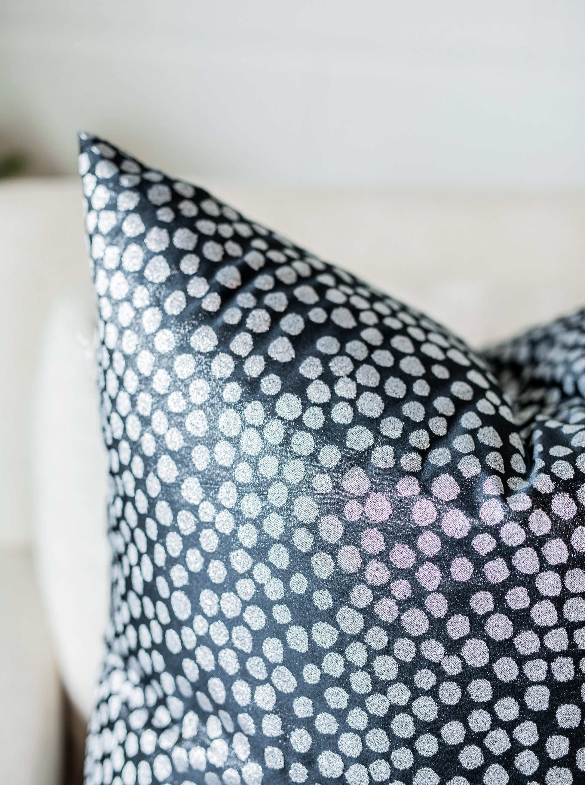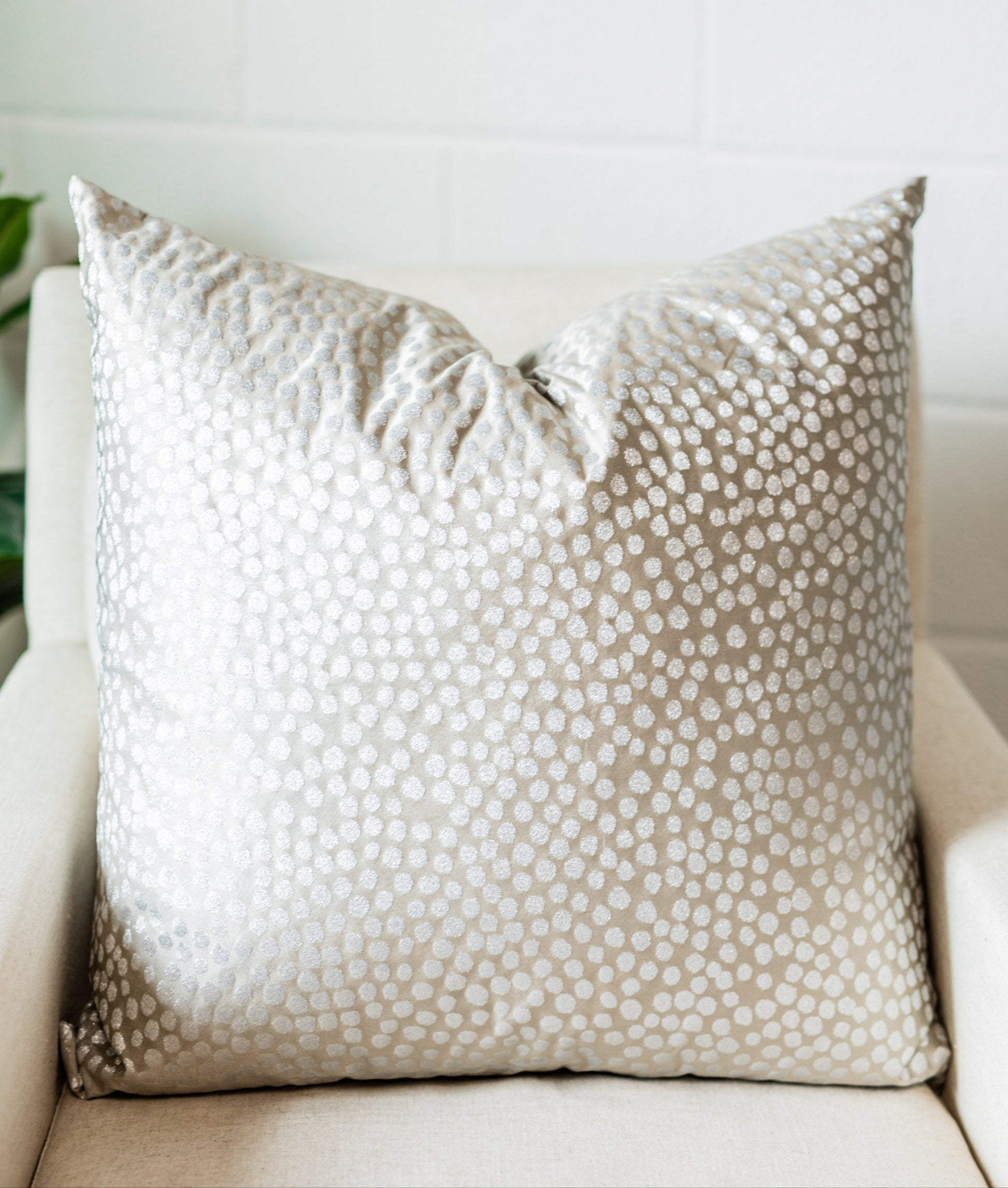 This Hepburn Square Pillow offers a fun spin on a classic style! Its spotted pattern has a subtle shine, giving it a touch of elegance. Choose from two neutral color options that you can mix-and-match with your decor. Plus, you get a premium feather-down insert for extra comfort - because who doesn't like a little extra cushion? So go ahead, get spot-on with Hepburn!