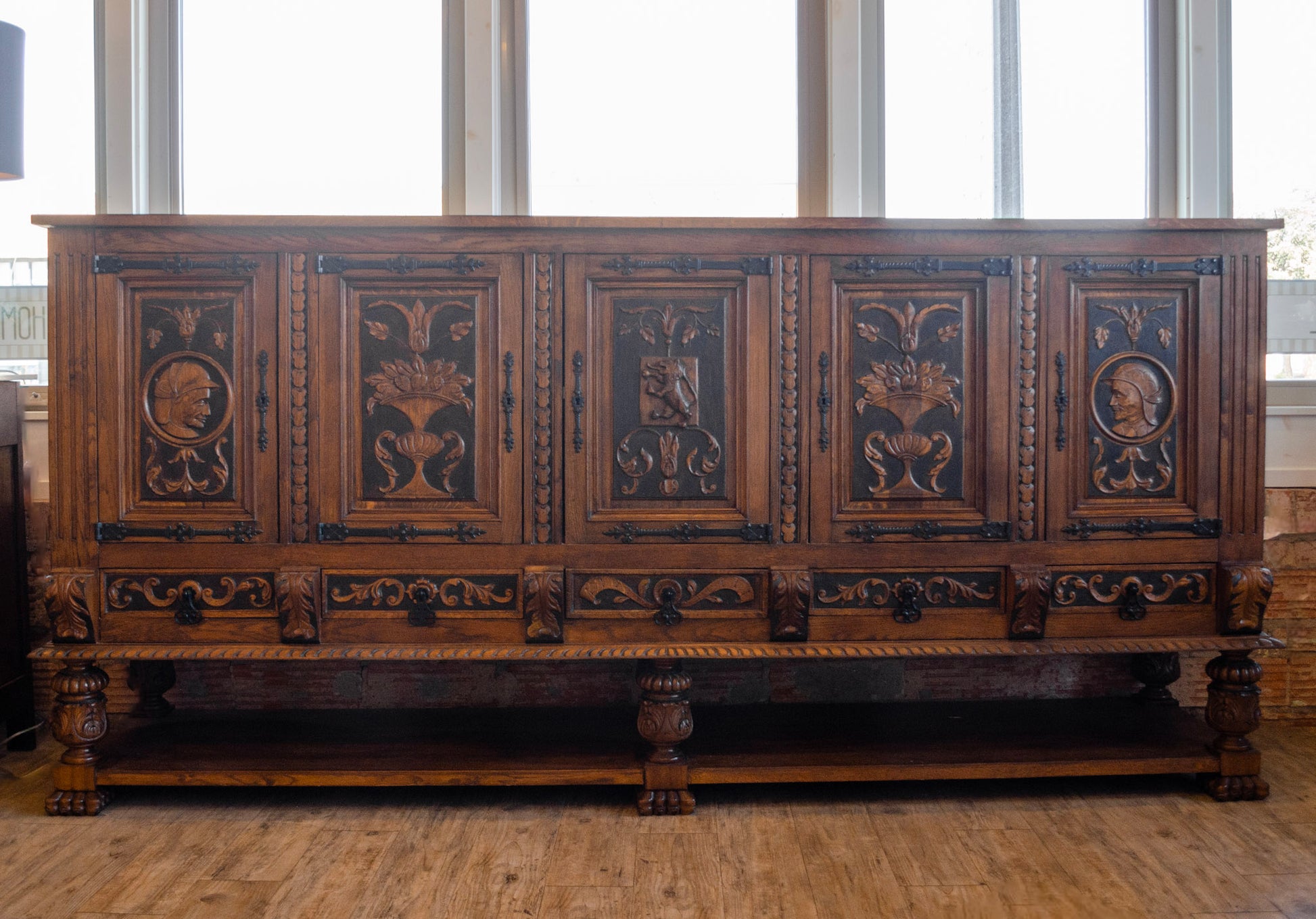 Highly Carved Neo Renaissance Oak Sideboard