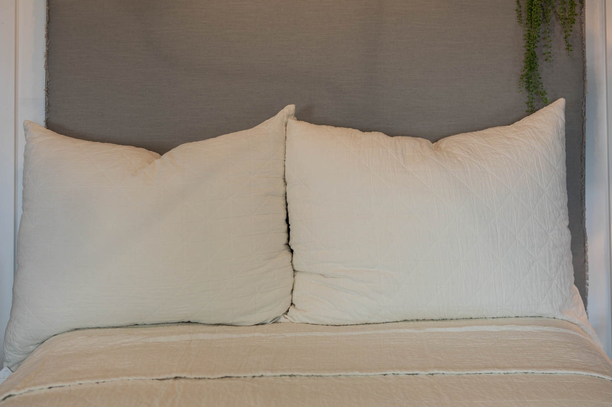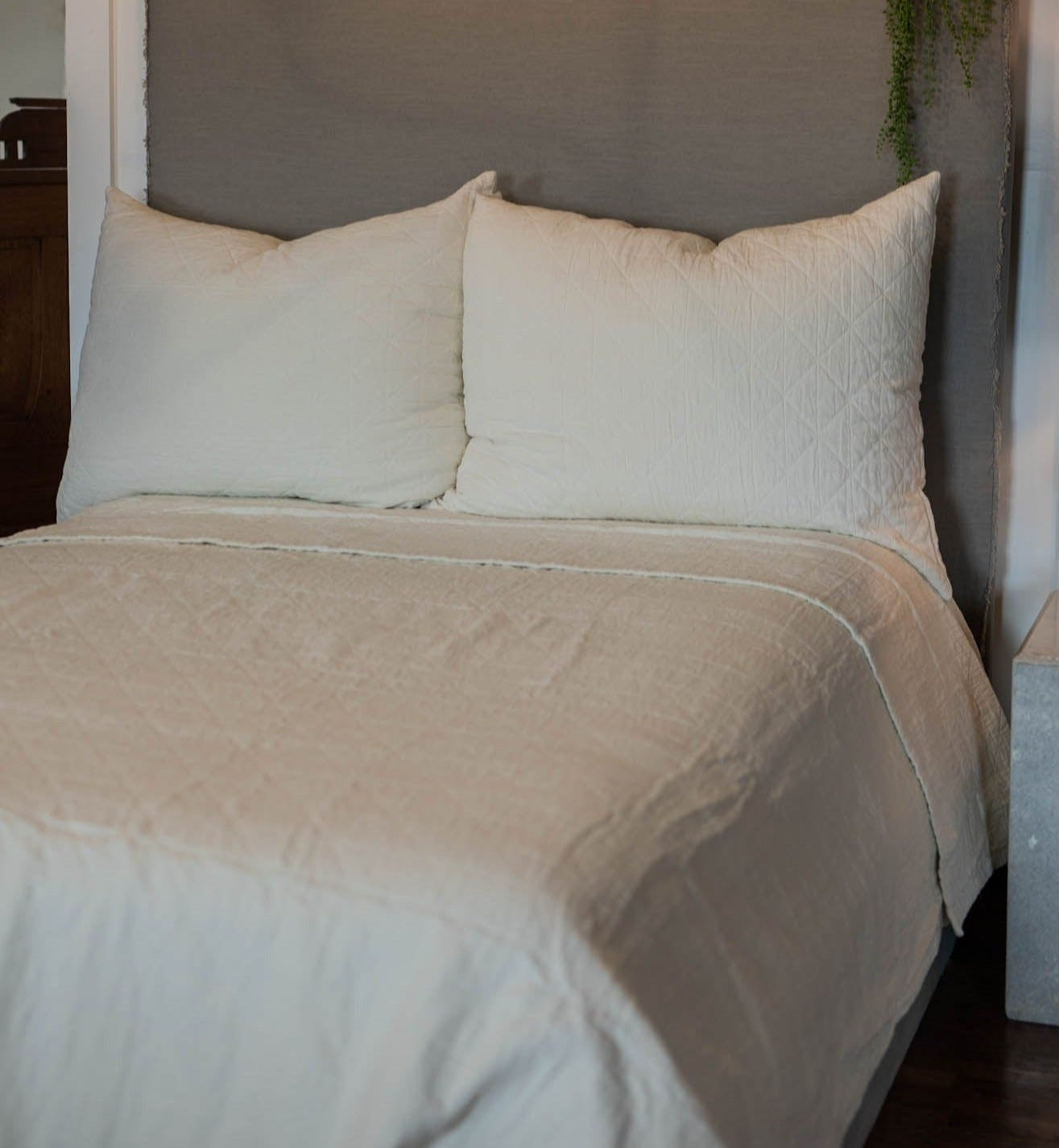 The style of today is highly influenced by a worldwide, handmade influence with a strong pull towards fabrics that are low-maintenance, yet comfortable and beautiful. Say goodbye to trips to the dry-cleaner as Marshall is made of fine cotton and has a beautifully aged look, mimicking a vintage blanket. The neutral color scheme guarantees this collection will be a timeless staple and effortless essential that is anything but ordinary. This lightweight 100% cotton quilt has a diamond and square grid stitching for a classic yet contemporary appearance!