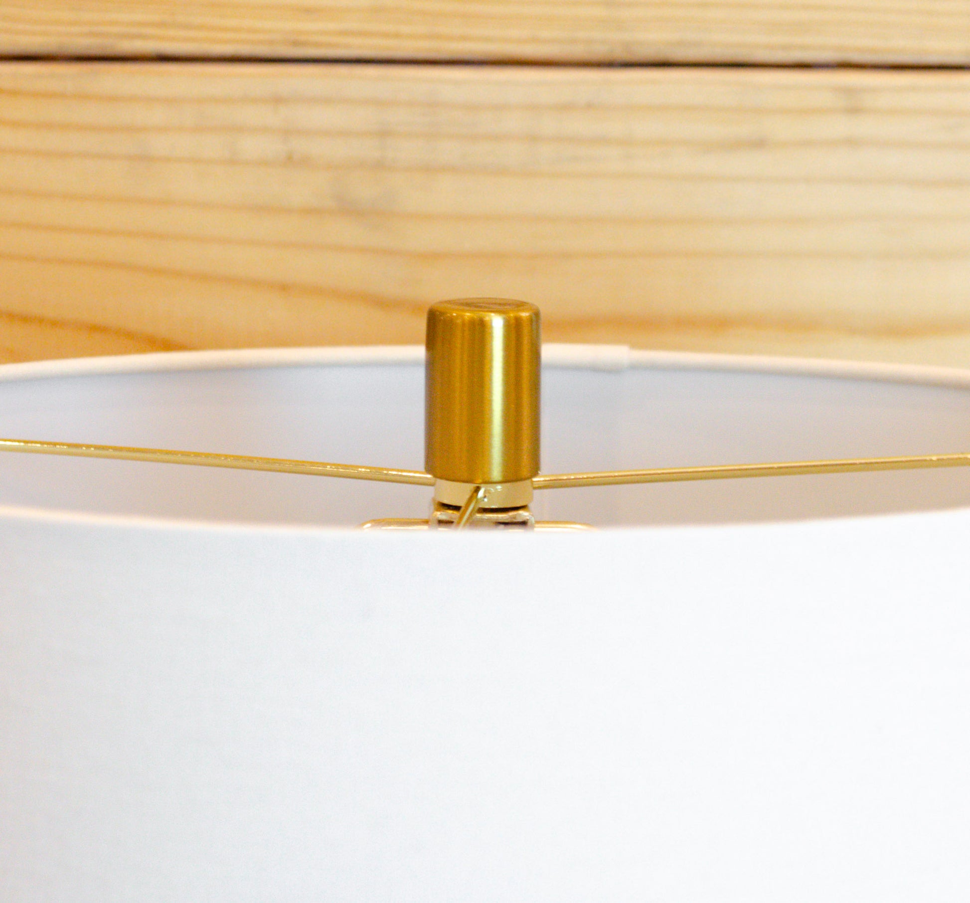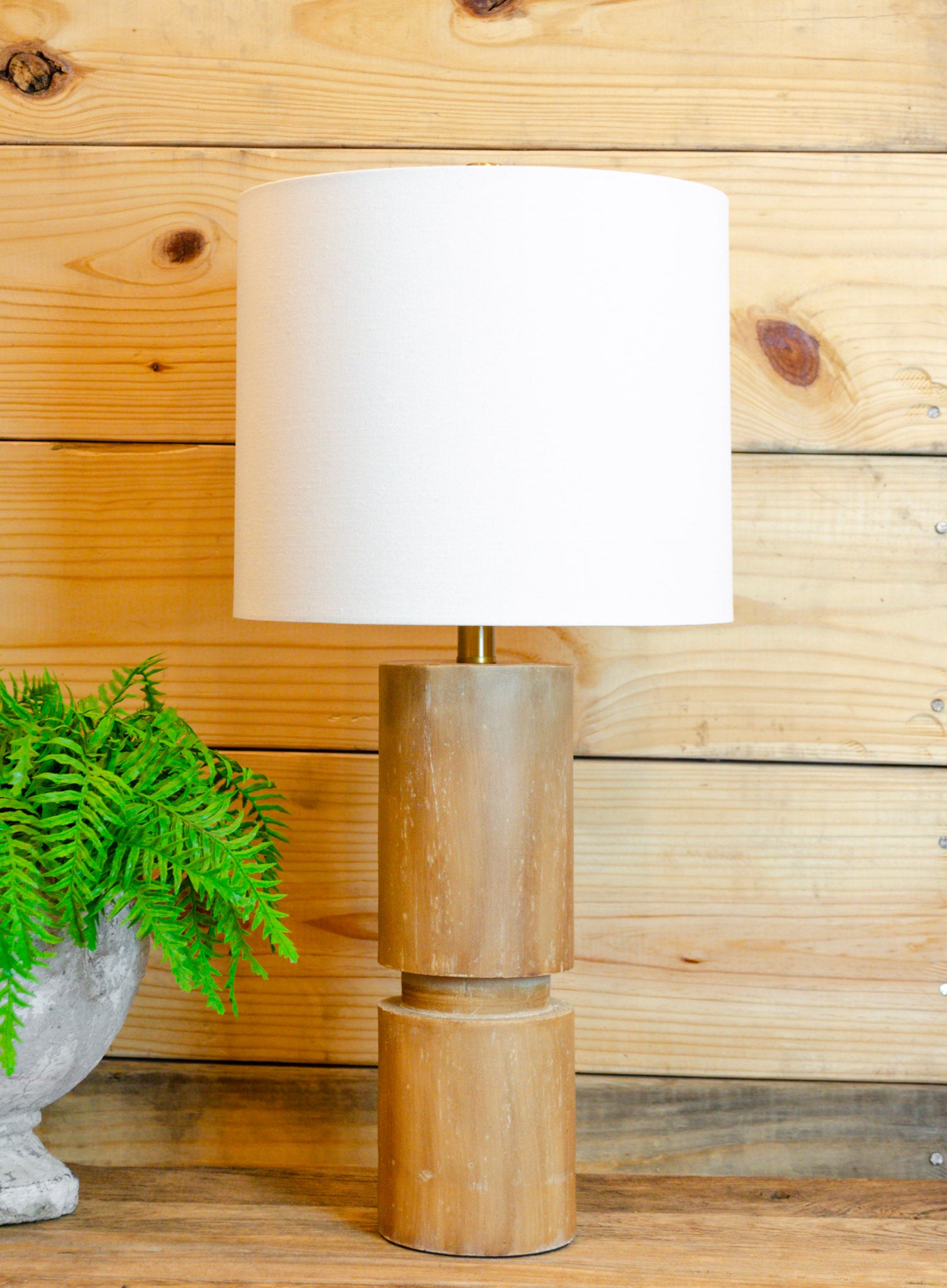 Create a perfect blend of classic and boho vibes with the Jocelyn Lamp! Crafted from sturdy resin, this geometric lamp features a natural wood look and clean white shade. With a touch of gold hardware, it brings an air of elegance to any room!
