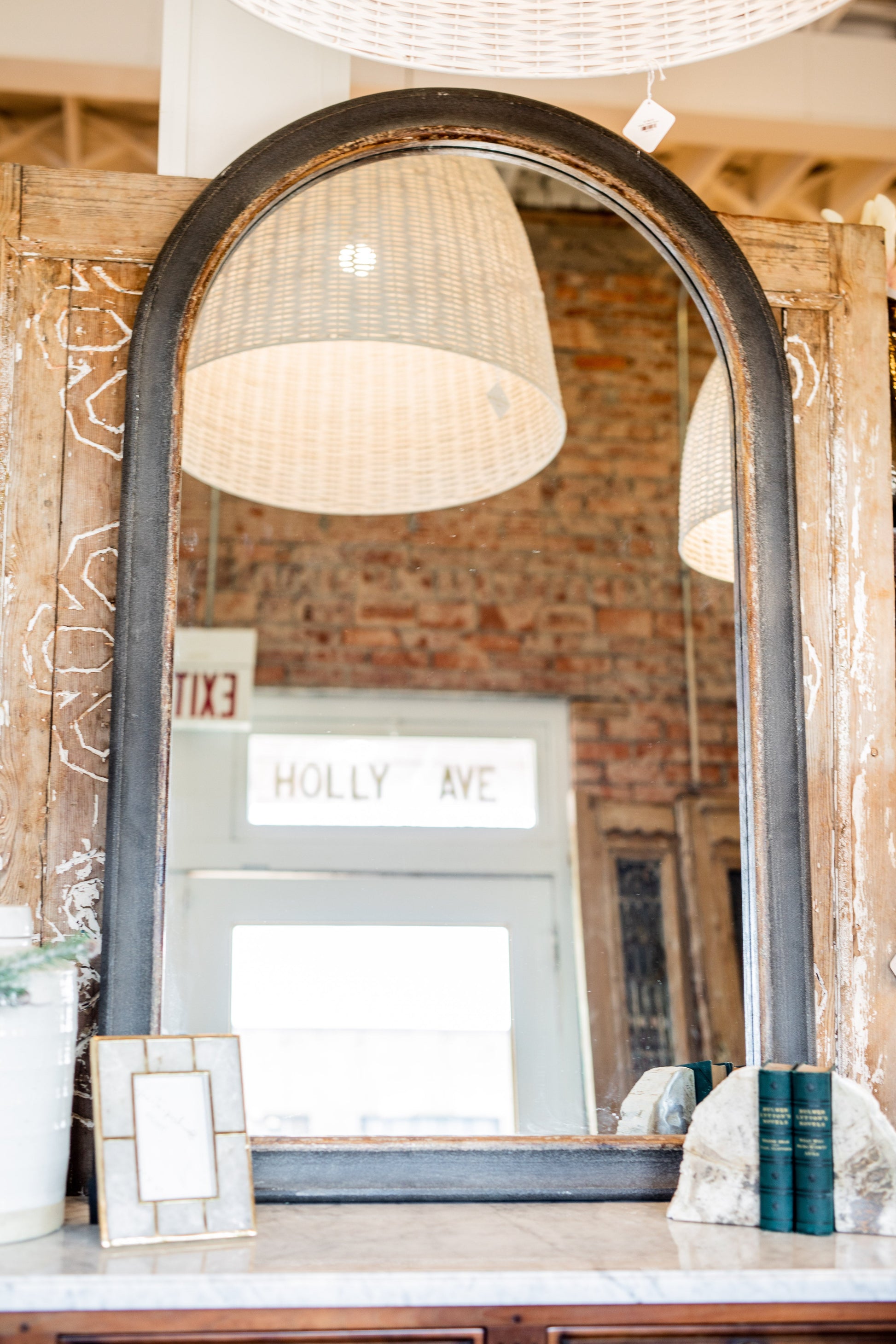 Large Distressed Framed Arched Mirror