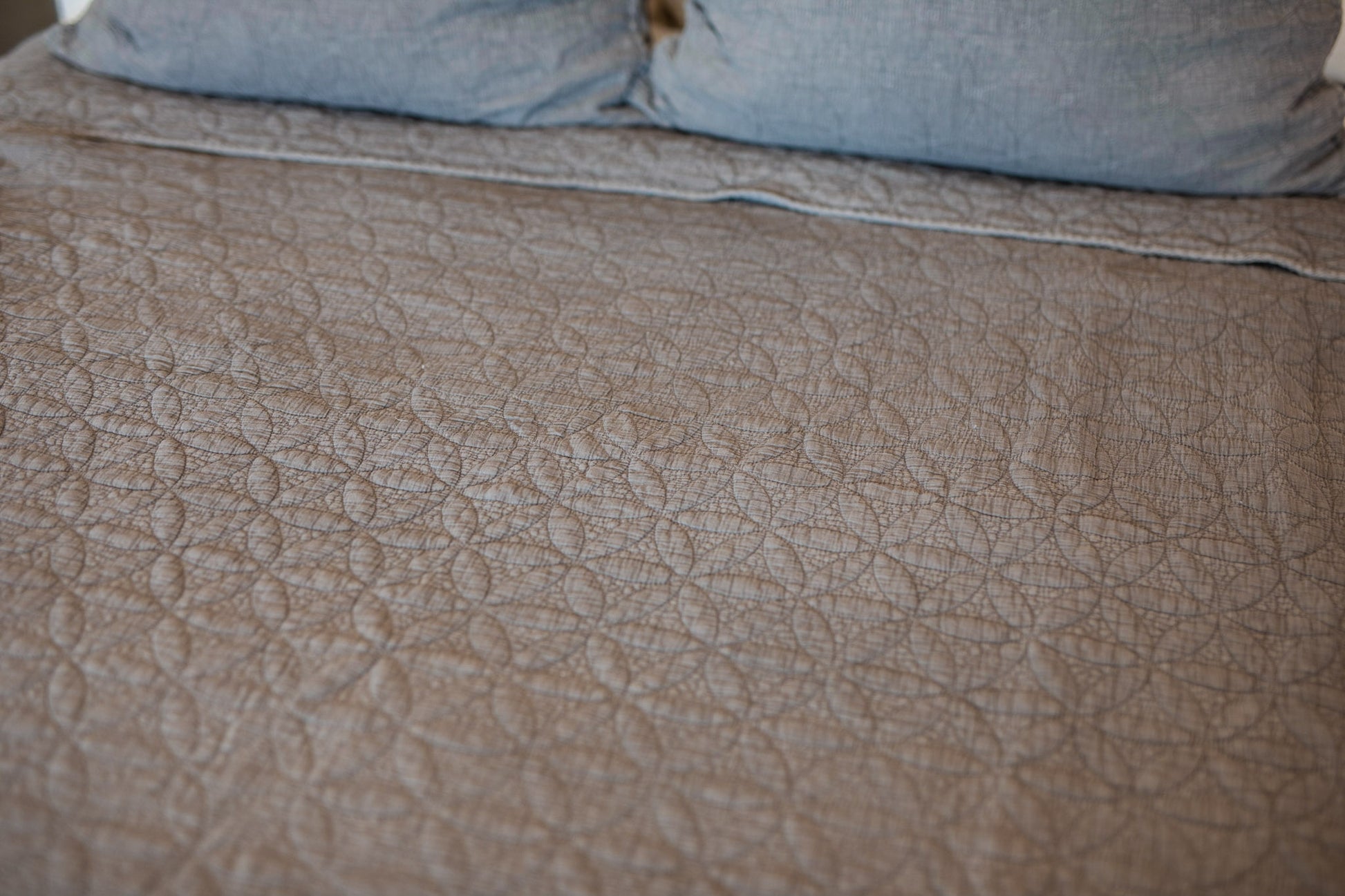 The Bergen is 100% stonewashed cotton coverlet collection. It features a geometric petal pattern that adds texture and dimension to any bed!