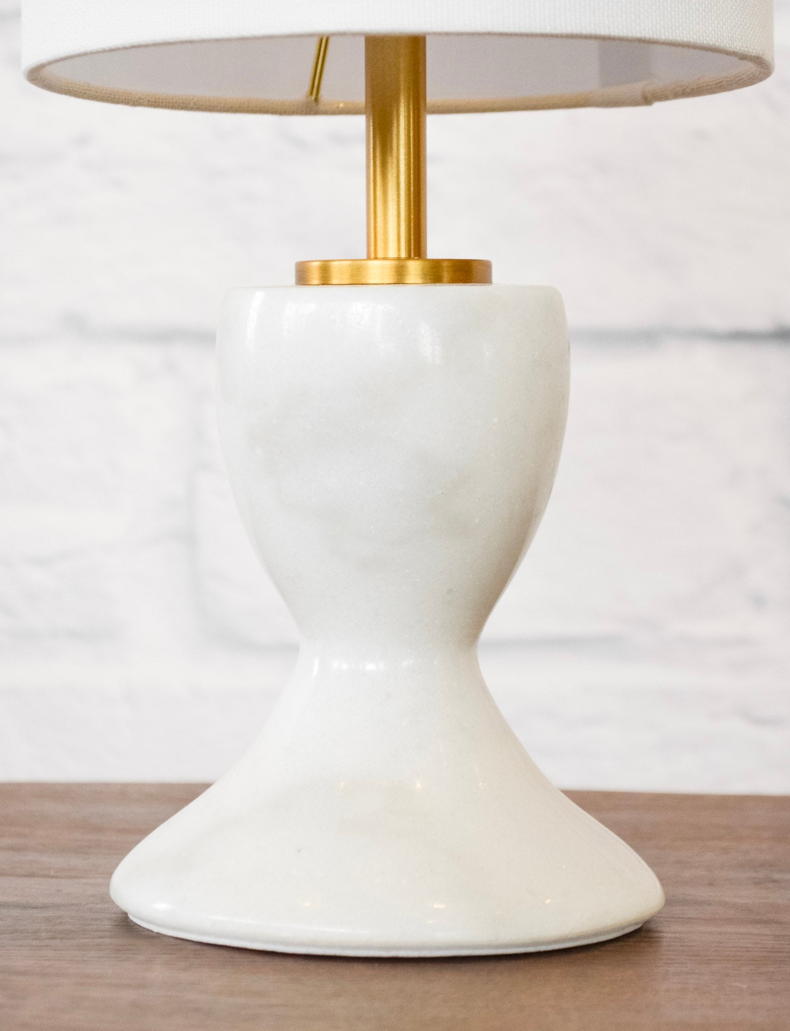 Add a touch of fun sophistication to any space with the Laura Mini Lamp! The geometric curved white marble base and clean white shade make it modern yet timeless. With its small size, it fits perfectly in any room.