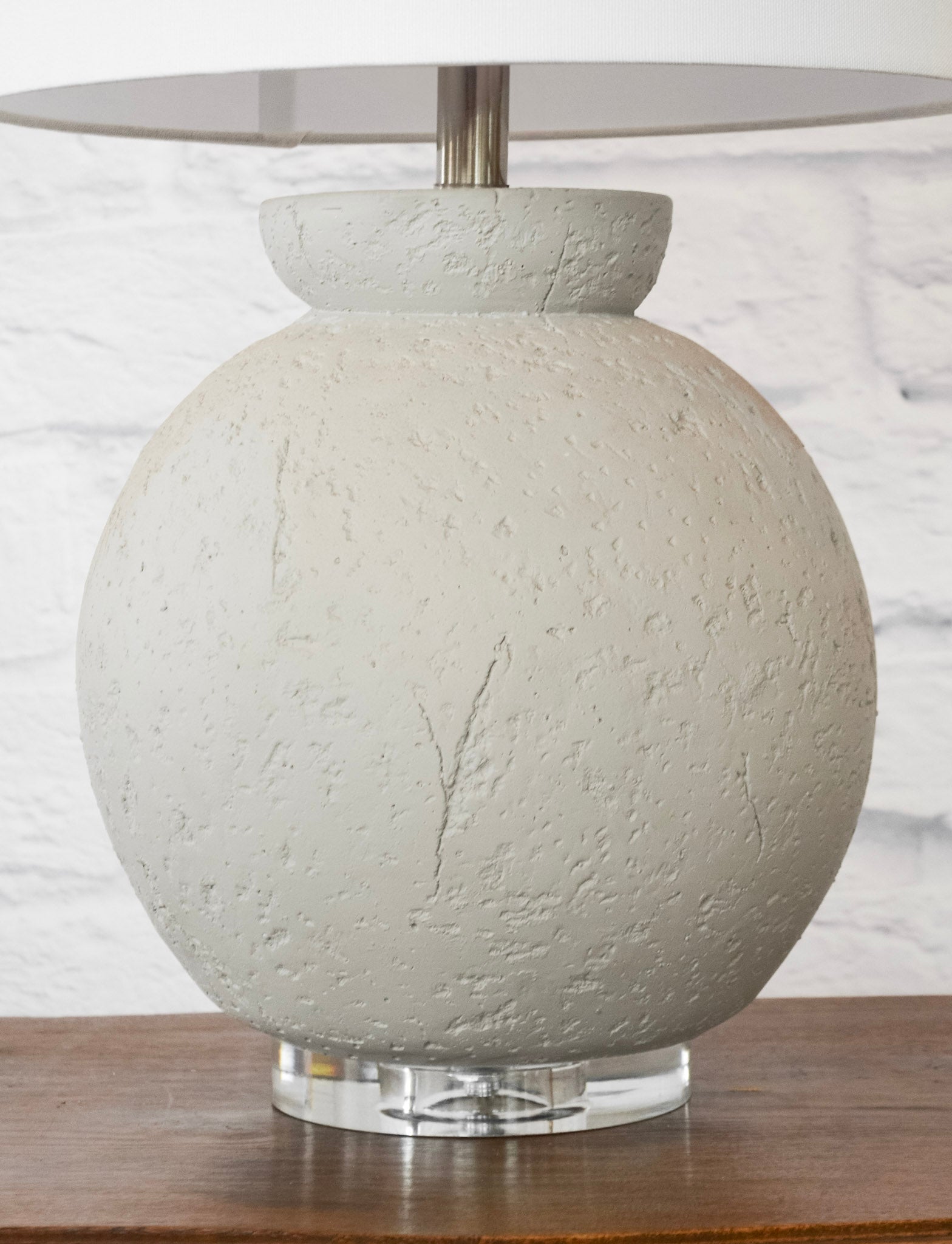 Add a touch of quirk to your home with the Maggie Lamp. This modern yet timeless piece features a round neutral textured base and a classic white shade. Its unique design will surely make a statement in any room. A must-have for those who love to mix and match styles!