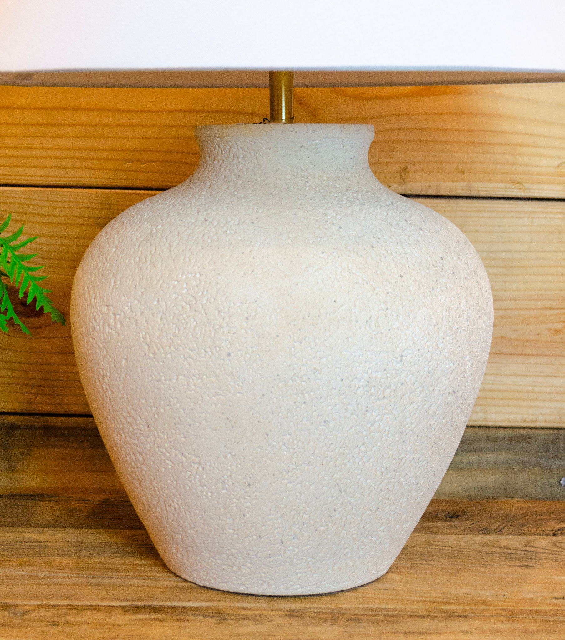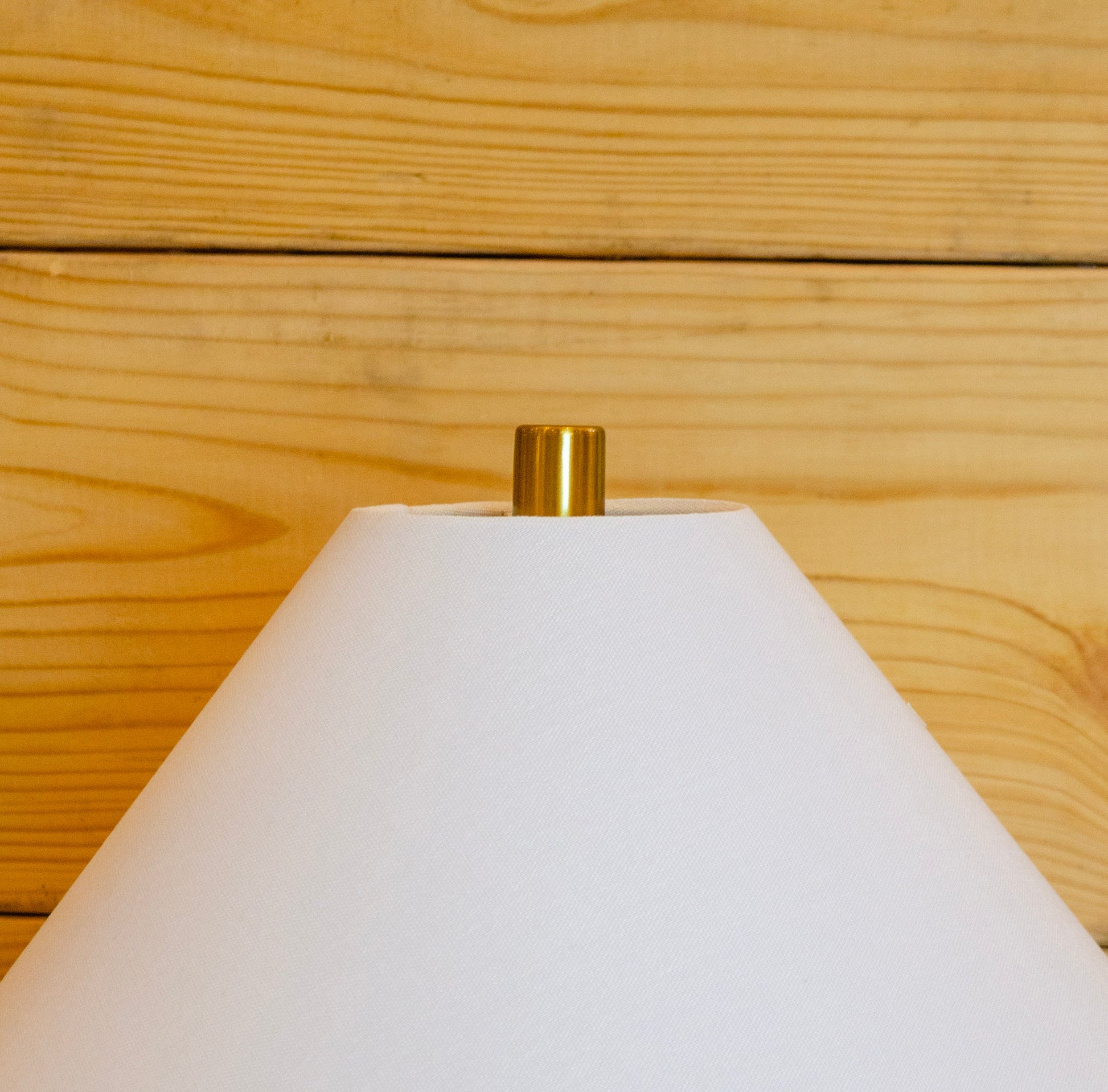 Add some timeless style to your space with the Mona Lamp. Featuring a neutral, subtly textured base and a clean white taper shade, this lamp will effortlessly elevate any room. The gold hardware adds a touch of elegance and the large shade provides ample diffused lighting!
