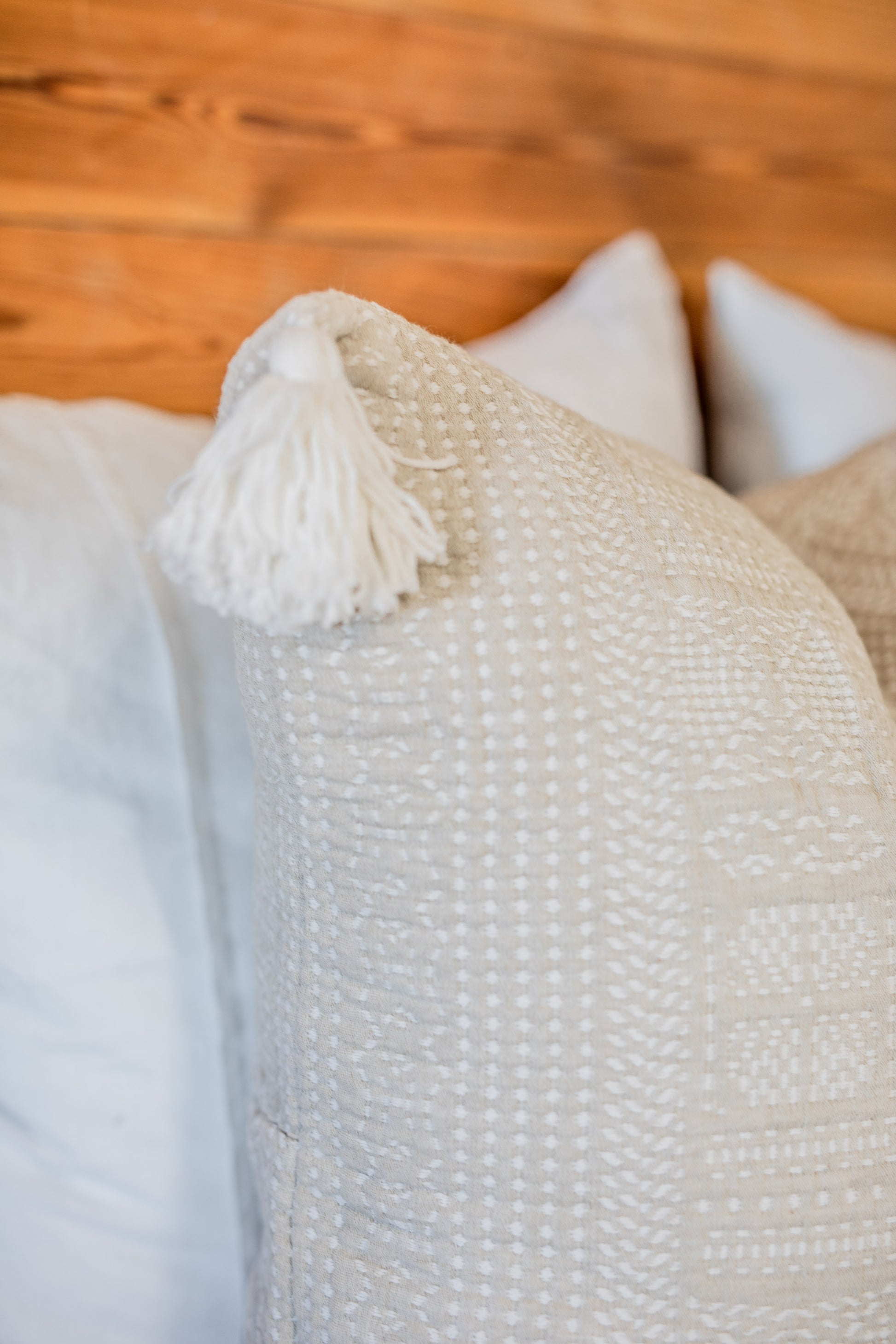 The Morse collection features a grey or taupe background with decorative white stitching, perfect for any cozy nights!