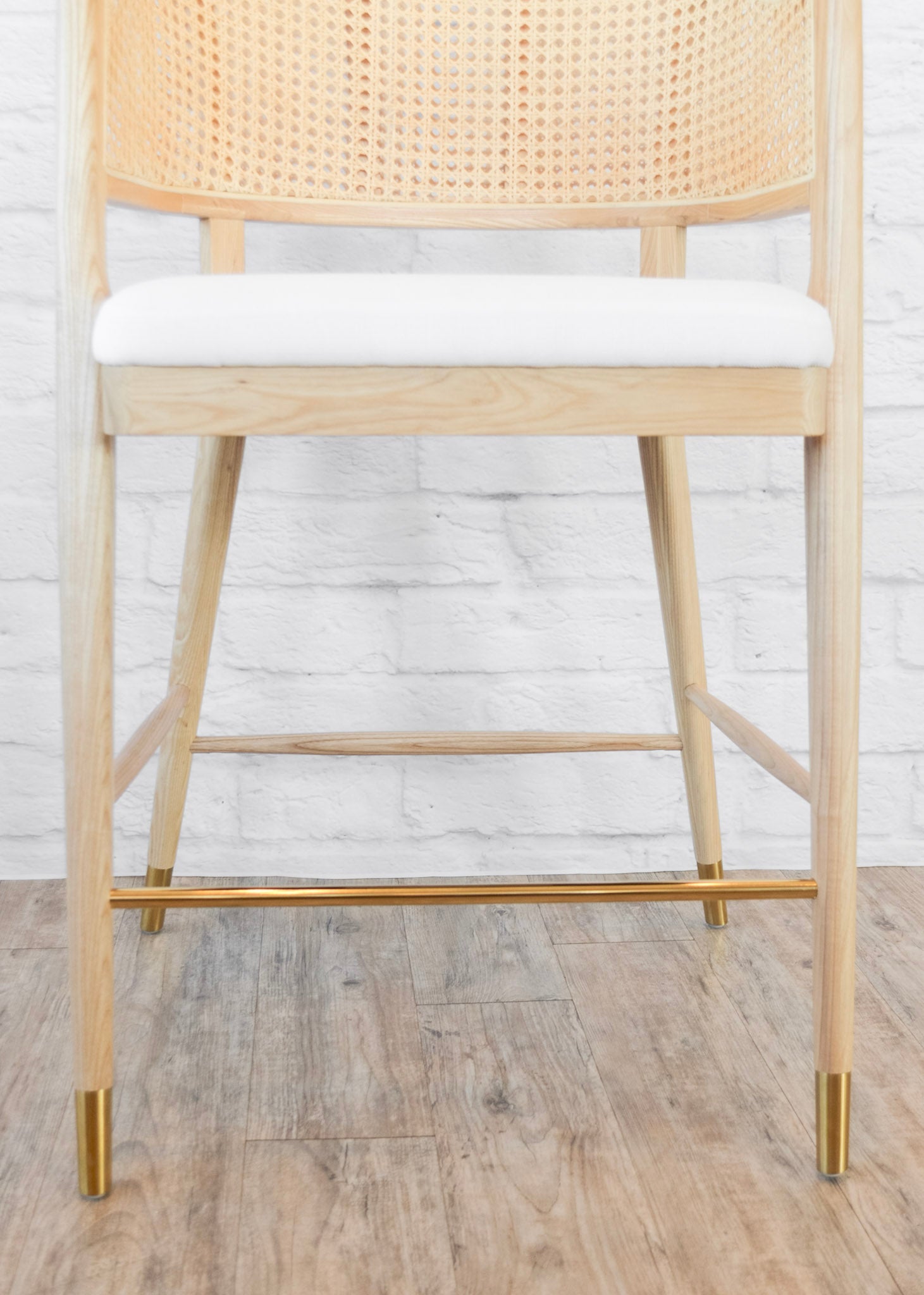 Discover a whole new level of refinement and contemporary flair with our amazing Nova Cane Barstool. Made from high-quality ash wood, rubber wood, and supported by a strong stainless steel frame, this barstool embodies sophistication and durability. Adorned in a luxurious linen fabric and boasting a rattan backrest, it exudes refined charisma and a charming mix of textures. Its neutral hue allows for effortless integration into various decor styles, elevating any space it's placed in!