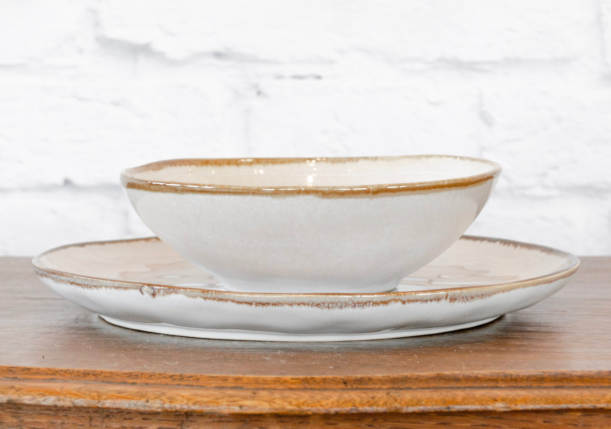 Add a touch of whimsy to your dining experience with our Off-White Ceramic Dinnerware Set. The cream color and natural edge bring a clean farmhouse aesthetic to your table. This set comes with a dinner plate and bowl, and each piece is handcrafted, making every meal feel truly special!