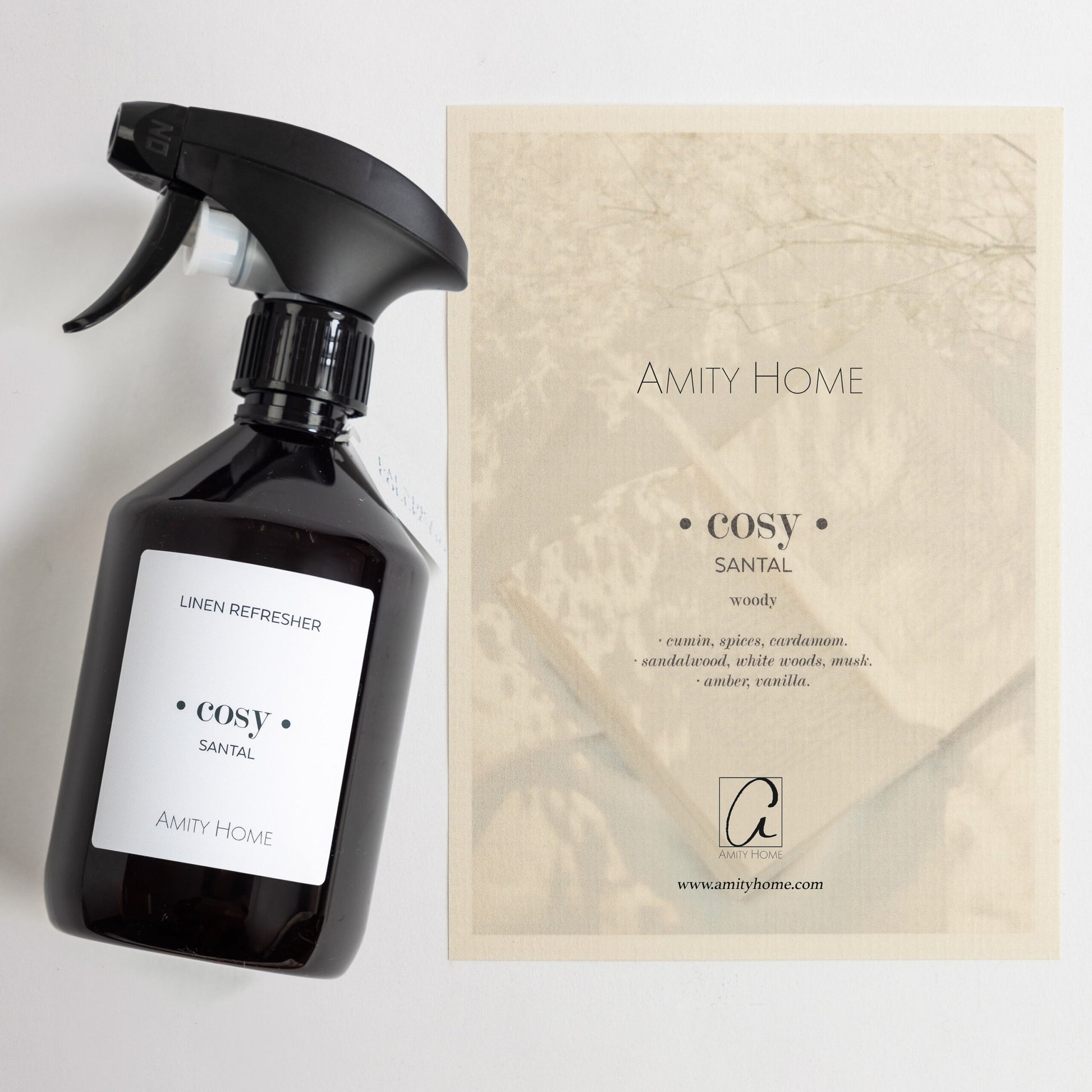 Cozy Santal: Musky / woody notes give a warm embrace that envelops you in a sense of comfort and peace.