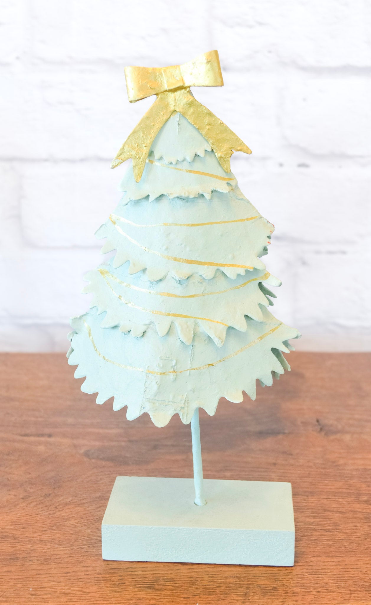 Deck the halls with a dash of personality! This whimsical metal holiday tree brings festive charm in two enchanting styles: soft pink adorned with a gleaming star and ribbons, or robin's egg blue dressed up with a big bow and shimmering tinsel. Finished in warm gold accents, this playful piece is the perfect standalone decoration or thoughtful gift for anyone who loves holiday décor with character. A unique treasure that celebrates the joy of the season in style!