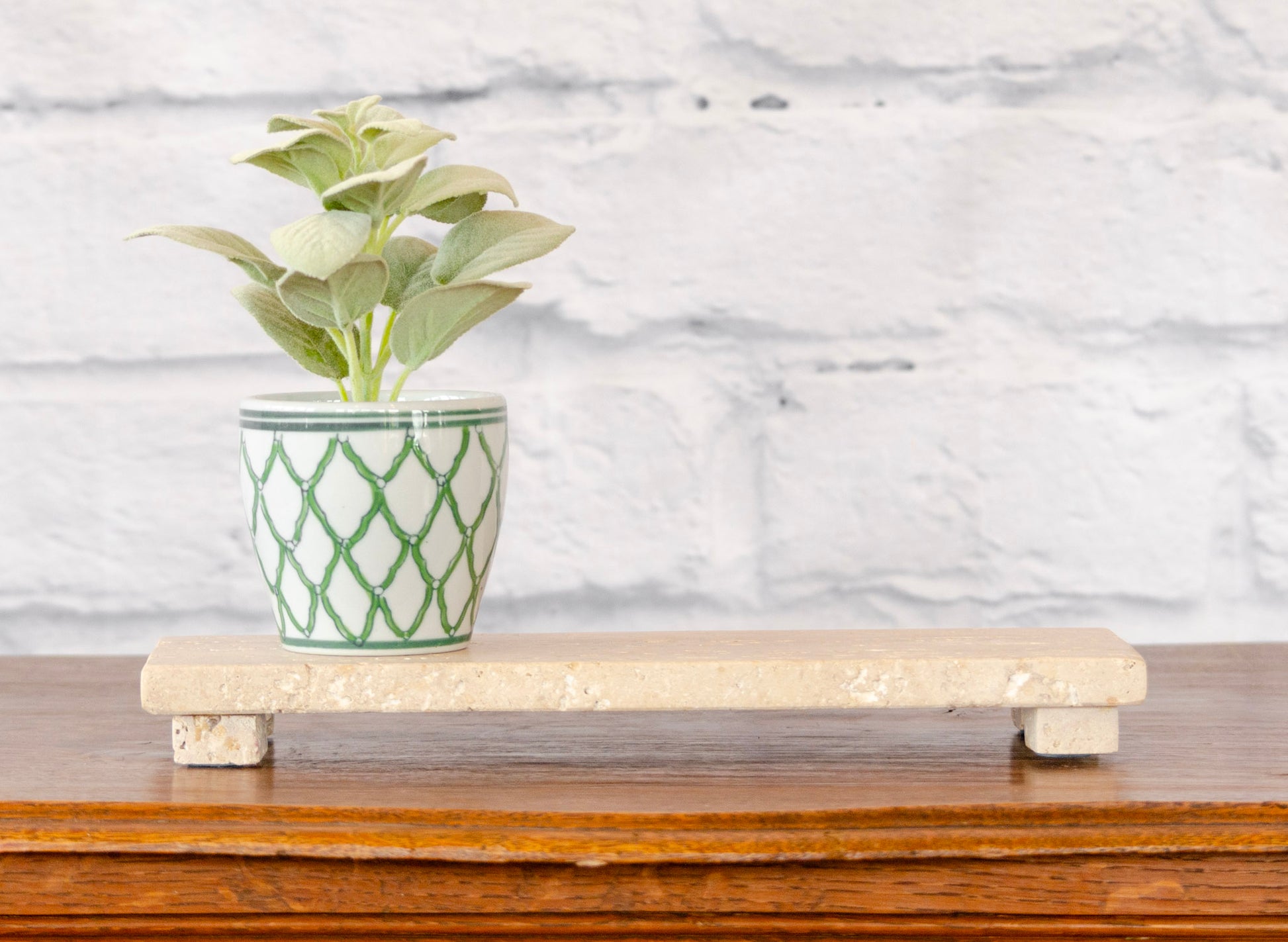 This travertine cutting board is both stylish and functional, with a textural beige surface and feet for easy carrying and serving. A great addition to any kitchen, or a thoughtful gift for someone special!