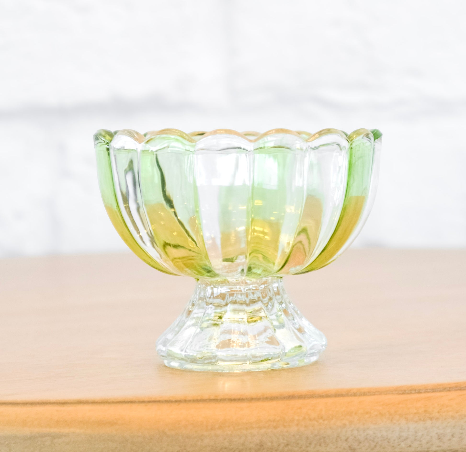 Add a splash of color and charm to your space with this playful Striped Pedestal Candy Dish. Featuring vibrant stripes in multiple colors and a fun scalloped edge, this glass dish is perfect for serving treats or adding a whimsical touch to your decor. Its unique design brightens any room with style and cheer.