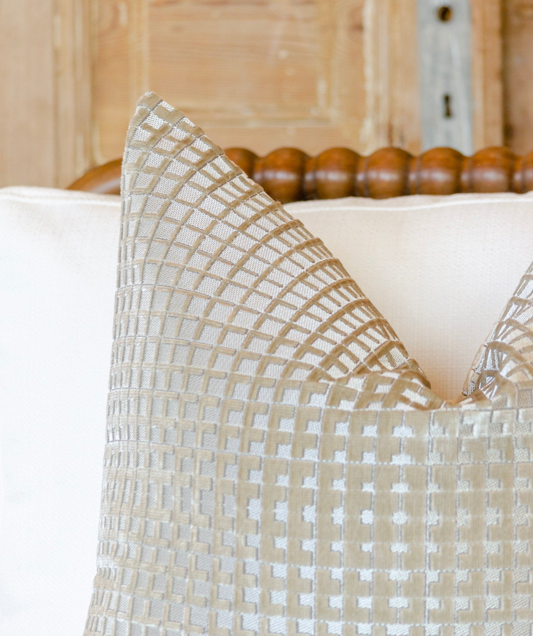Elevate your space with the Success Accent Pillow! This modern and dynamic design boasts a luxurious velvet shifting grid pattern in stunning silver or gold. Each pillow comes with a premium feather-down insert for added comfort. Make a unique statement with this upscale, gorgeous addition to your home!