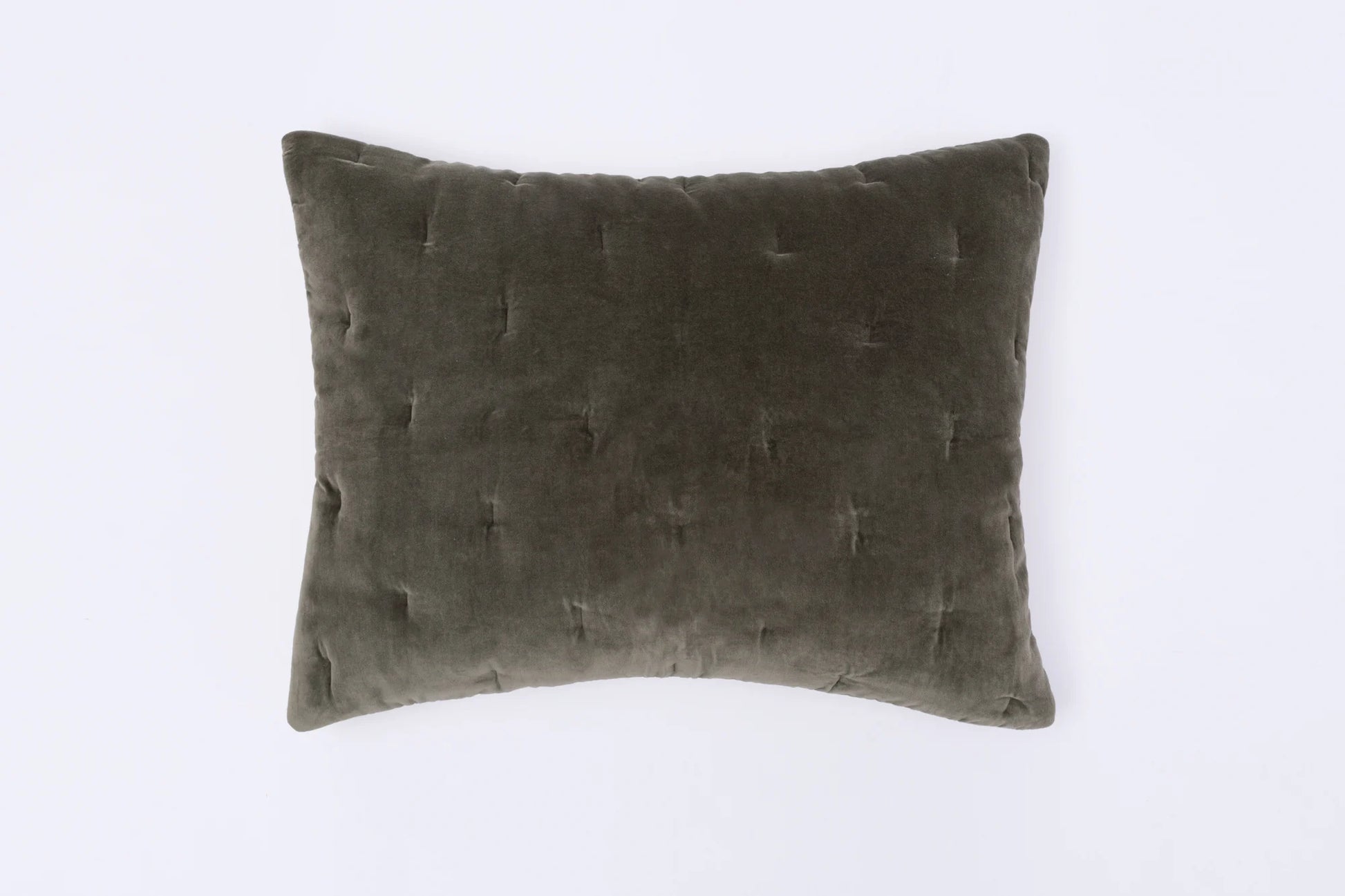 The Roan quilt easily adds understated luxury as a primary layer, or as accent. The lush cotton velvet reverses to a raw cotton and flax flecked back. The lofty fill is simply tacked for a restrained finish that can fit in a wide variety of styles.