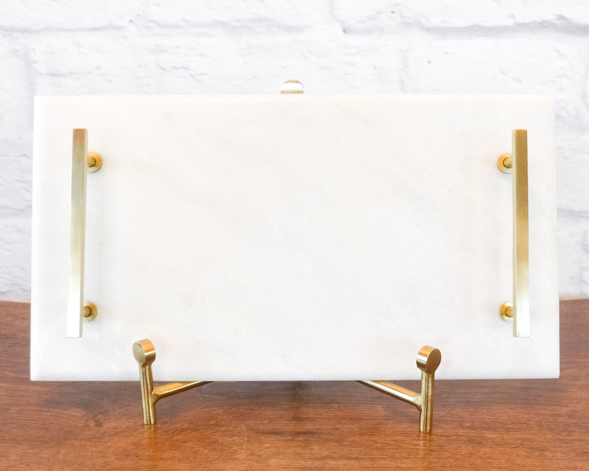 Crafted from luxurious marble with brass accents, this serving tray brings refined elegance to any gathering. Ideal for presenting charcuterie boards, appetizers, or beverages, its timeless design complements coastal, traditional, and transitional interiors with equal grace. Functional handles make serving effortless while adding a touch of understated luxury to your entertaining!