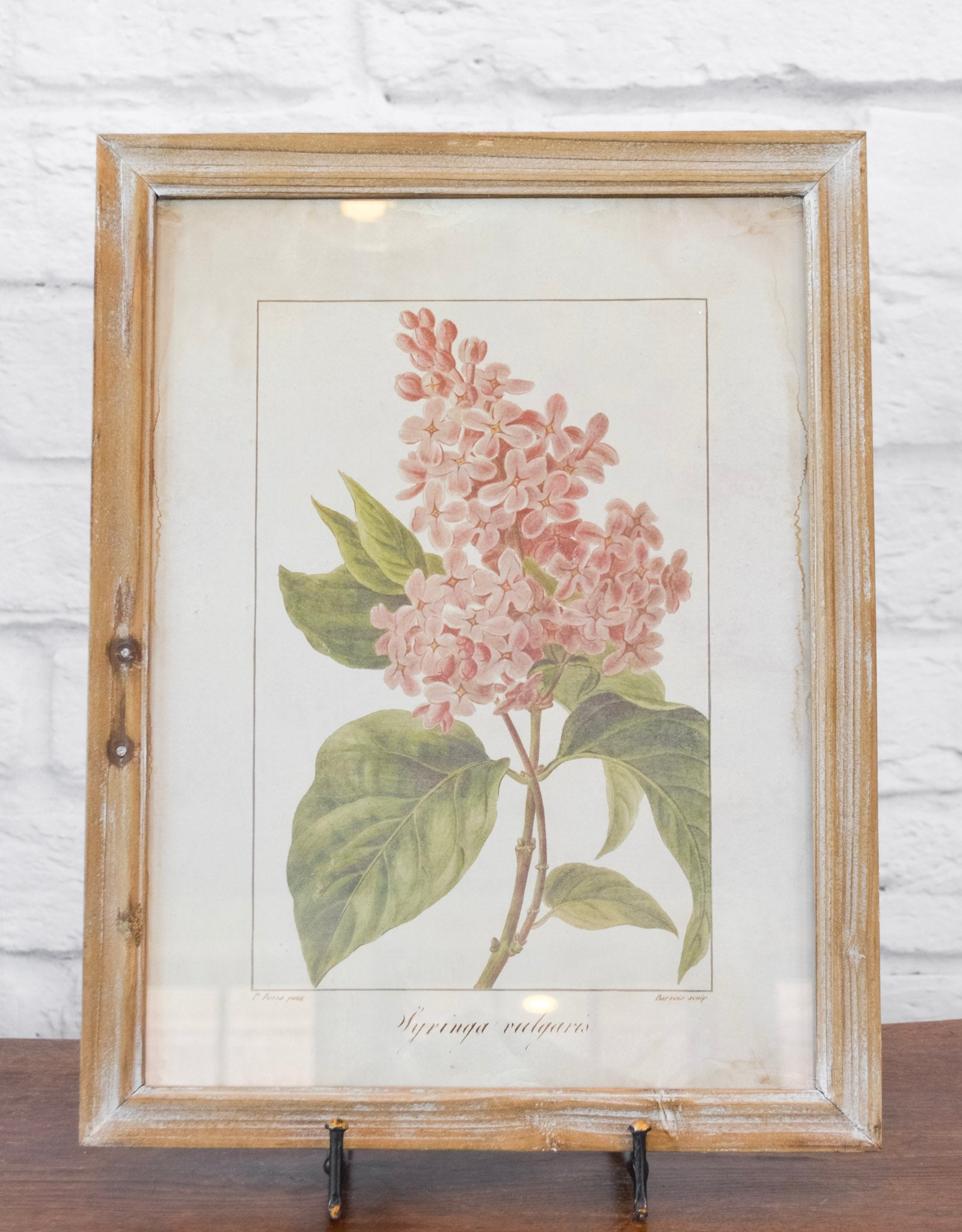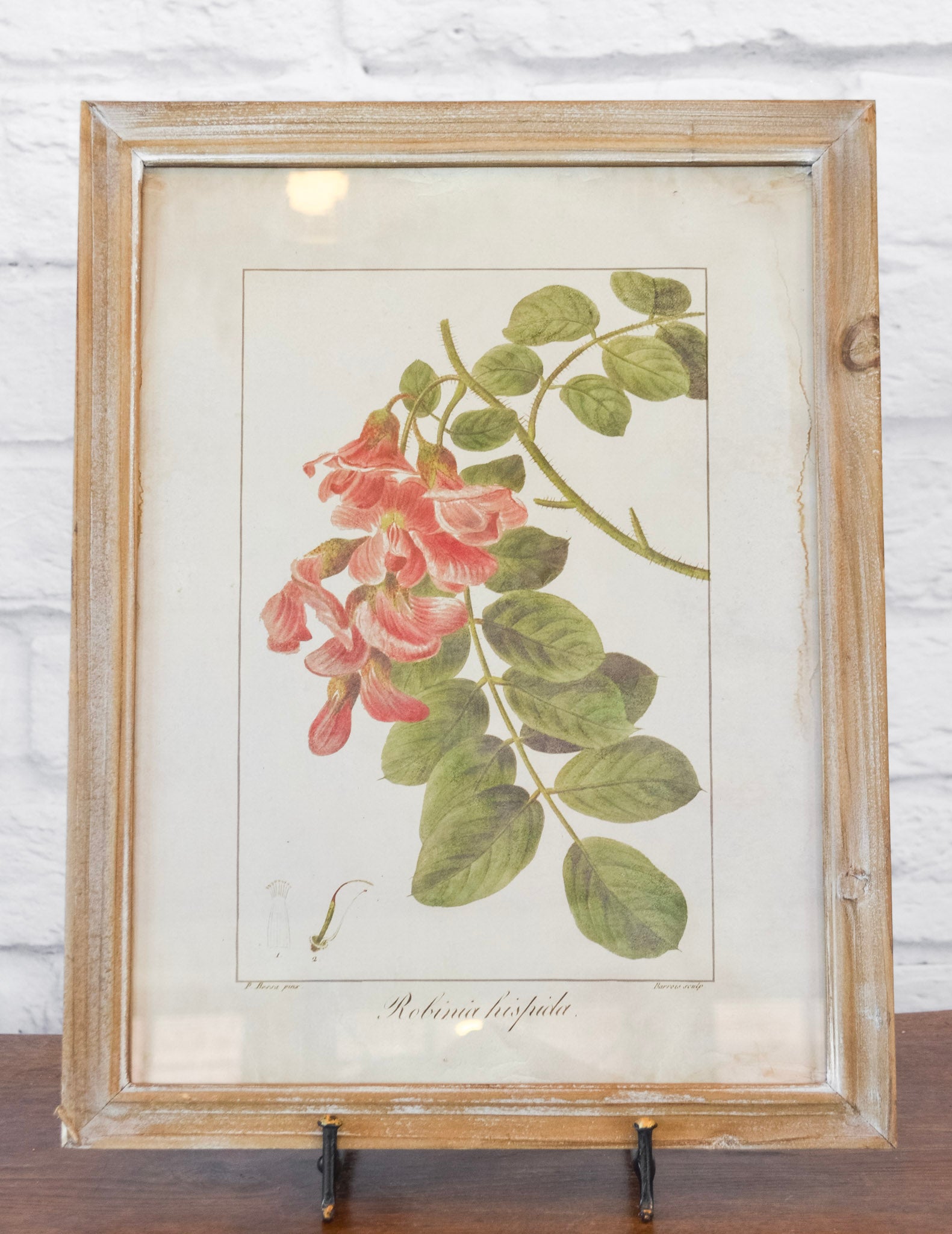 Spruce up your space with one of these floral framed prints! These charming vintage reproductions showcase a variety of beautiful flowers, each delicately printed on antique paper. Note the scientific name below each image while admiring the distressed white-washed wood frame. Pick your favorite or collect them all - they're sold separately!